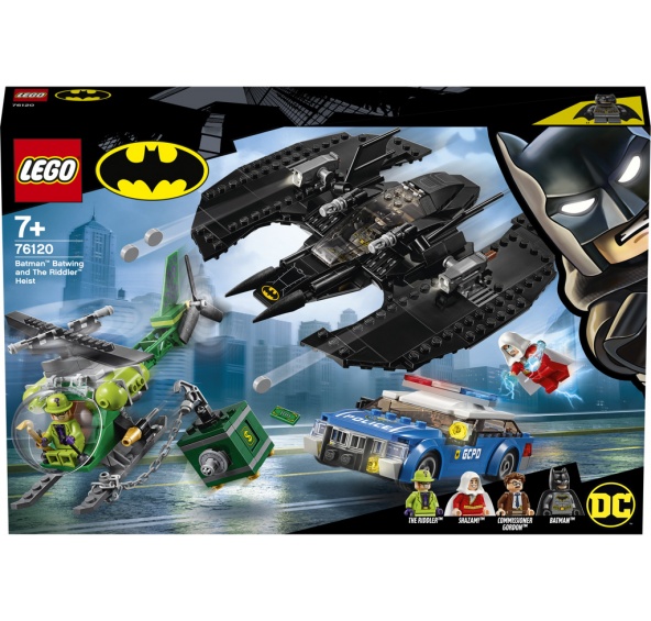 Překaz Hádankáři loupež s LEGO® Batmanem, komisařem Gordonem a SHAZAMEM. Superpadouch ukradl trezor, připnul ho k helikoptéře a teď se snaží uprchnout. Dožeň ho s Batmanovým výkonným letounem Batwing a policejním autem komisaře Gordona. Vyhni se raketovým střelám vrtulníku a opětuj palbu z vystřelovačů Batwingu a dalších bezvadných zbraní. S touto úžasnou stavebnicí akce nikdy nekončí. Sestřel vrtulník a dopadni Hádankáře ještě předtím, než uteče s ukradenými penězi a drahokamy.