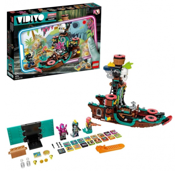 "Otevřete dětem pomocí stavebnice Punk Pirate Ship (43114) od LEGO® VIDIYO™ bránu do světa punk-rockových hudebních videí, v němž se mohou stát režiséry, producenty i hvězdami zároveň. Stáhněte si bezplatnou aplikaci a naskenujte 3 minifigurky. Pak pomocí aplikace naskenujte hotový model a sledujte, jak se ve videích vašeho potomka promění loď v pódium. Děti si zamilují vytváření vlastních hudebních videí a jejich sdílení s ostatními uživateli na bezpečné sociální platformě.