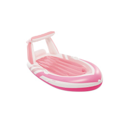 Pohodlné nafukovací lehátko se stříškou o rozměrech 2,57 m x 1,35 m. Vyrobeno z kvalitního vinylu. Lehátko má dva odolné držáky a držák na pití. Maximální váhový limit je 100 kg. Opravná záplata součástí balení.