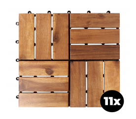 Podlahové dlaždice jsou vyrobené z kvalitního akáciového dřeva, což je tropické tvrdé dřevo, které je odolné proti vlivům počasí a má dlouhou životnost.