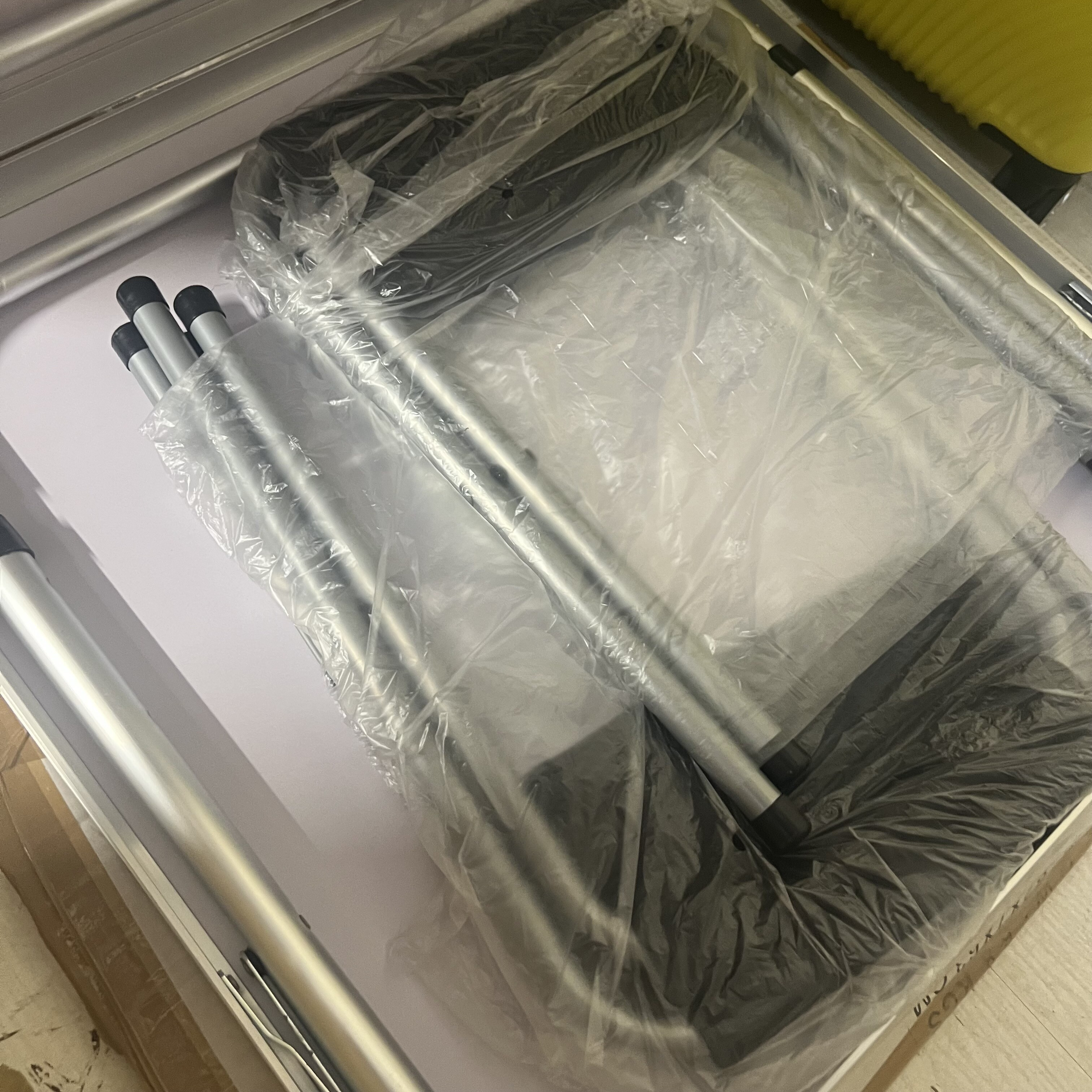 - Ve sbaleném stavu je stůl židle snadno přenosný v podobě ploché desky s uchem