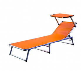 Skládací zahradní lehátko se stříškou a zpevněnou hliníkovou konstrukcí, v moderním designu, vhodné pro zahrady, na kempování či pláže.