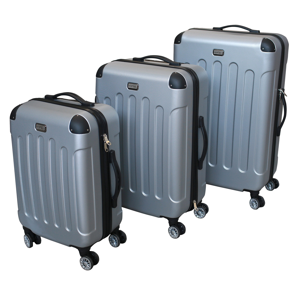Všechny kufry v sadě jsou vybaveny čtyřmi otočnými (o 360°) dvoukolečky a lehkou hliníkovou teleskopickou rukojeti s tlačítkem, pro její uzamčení.