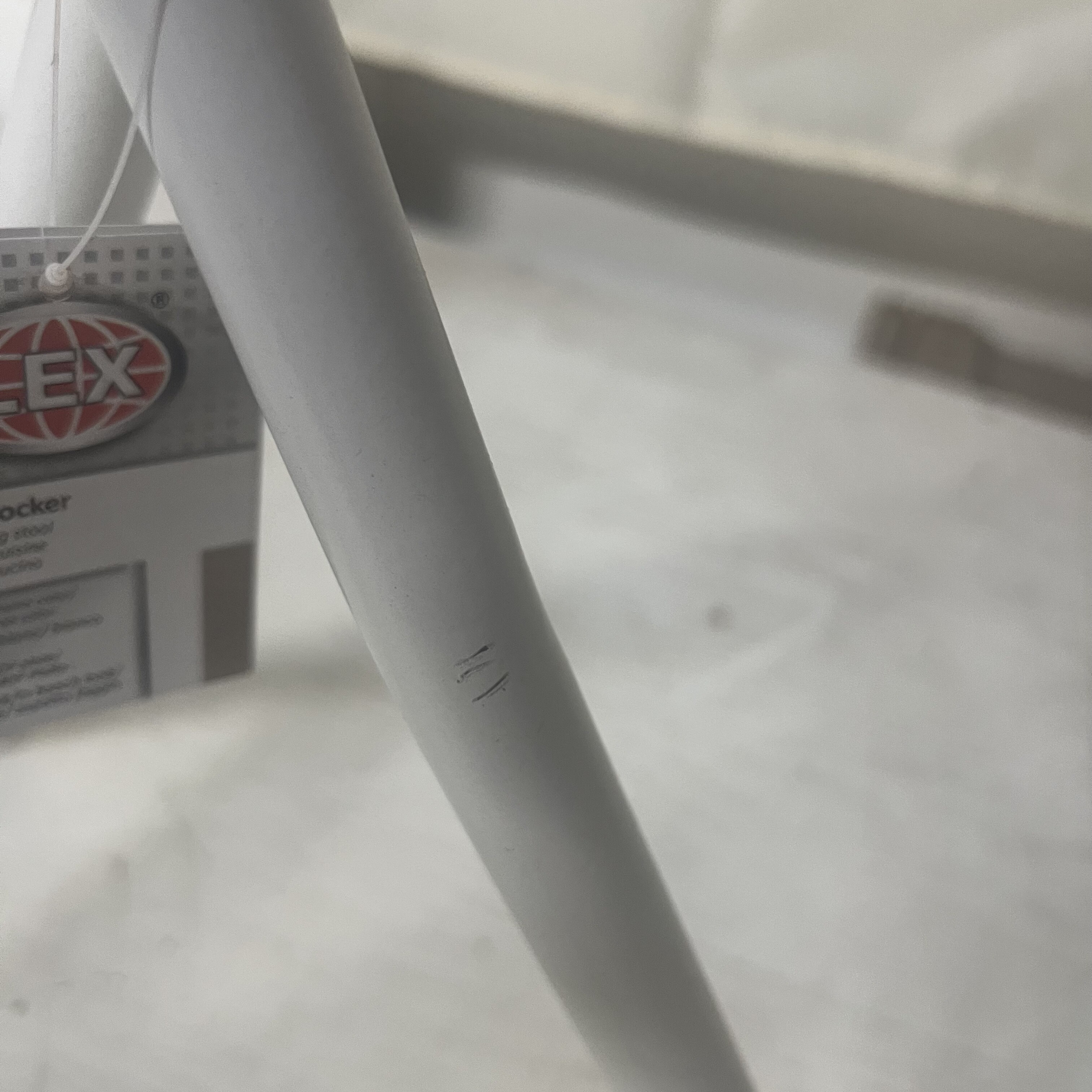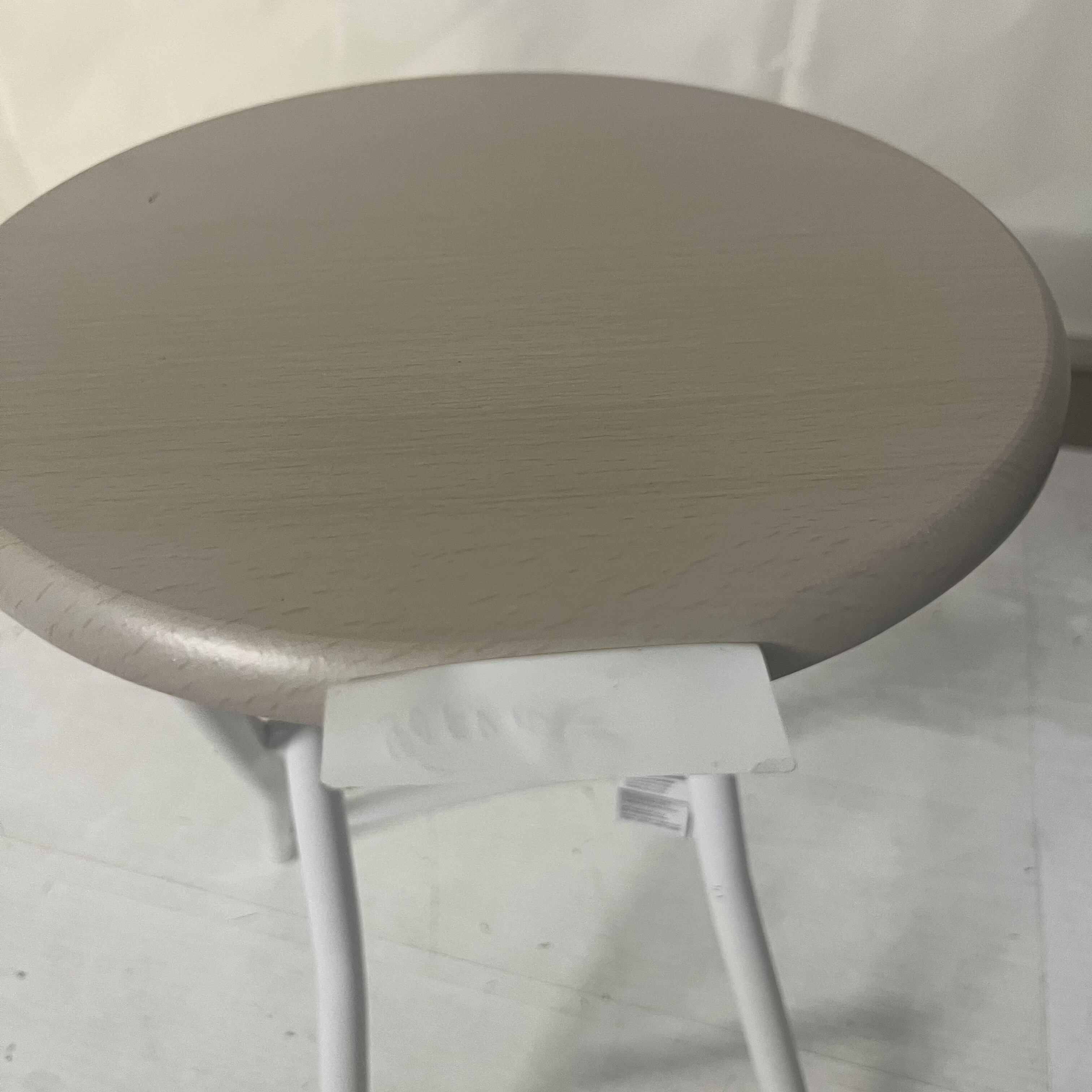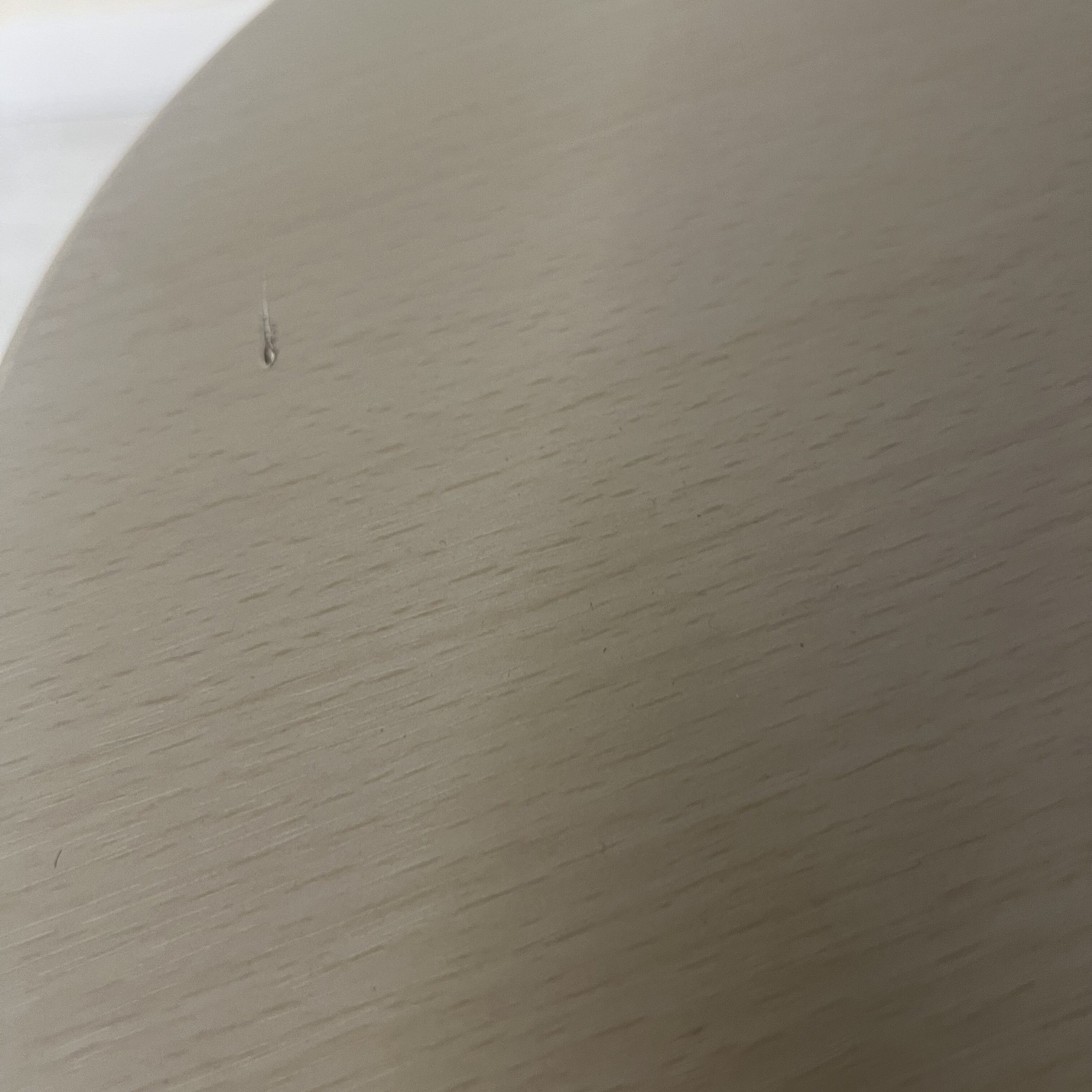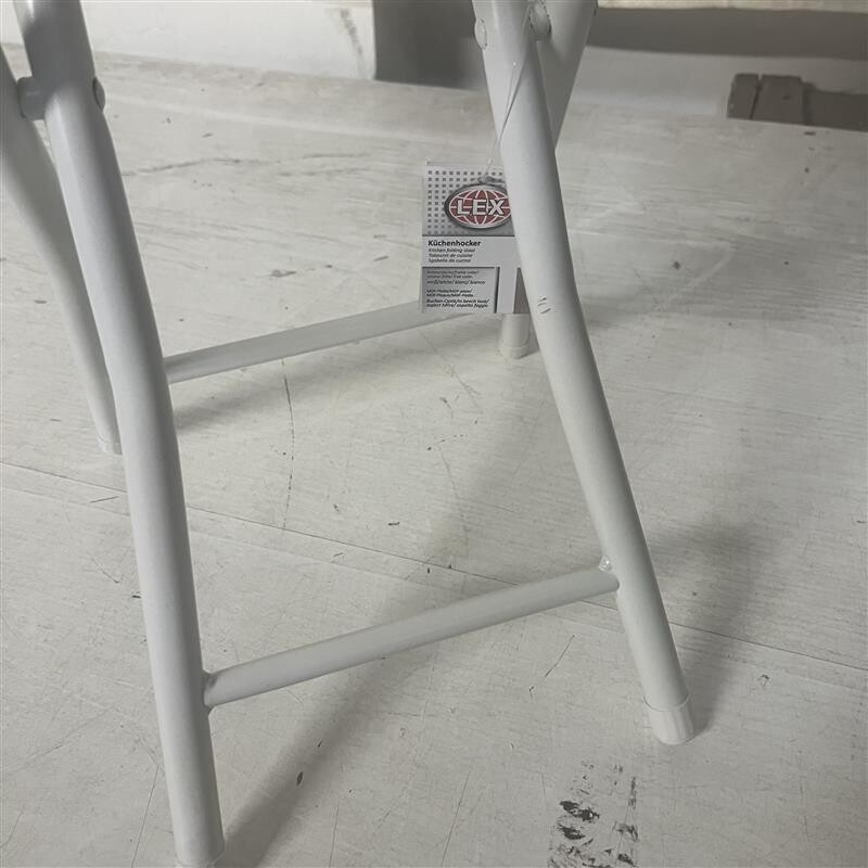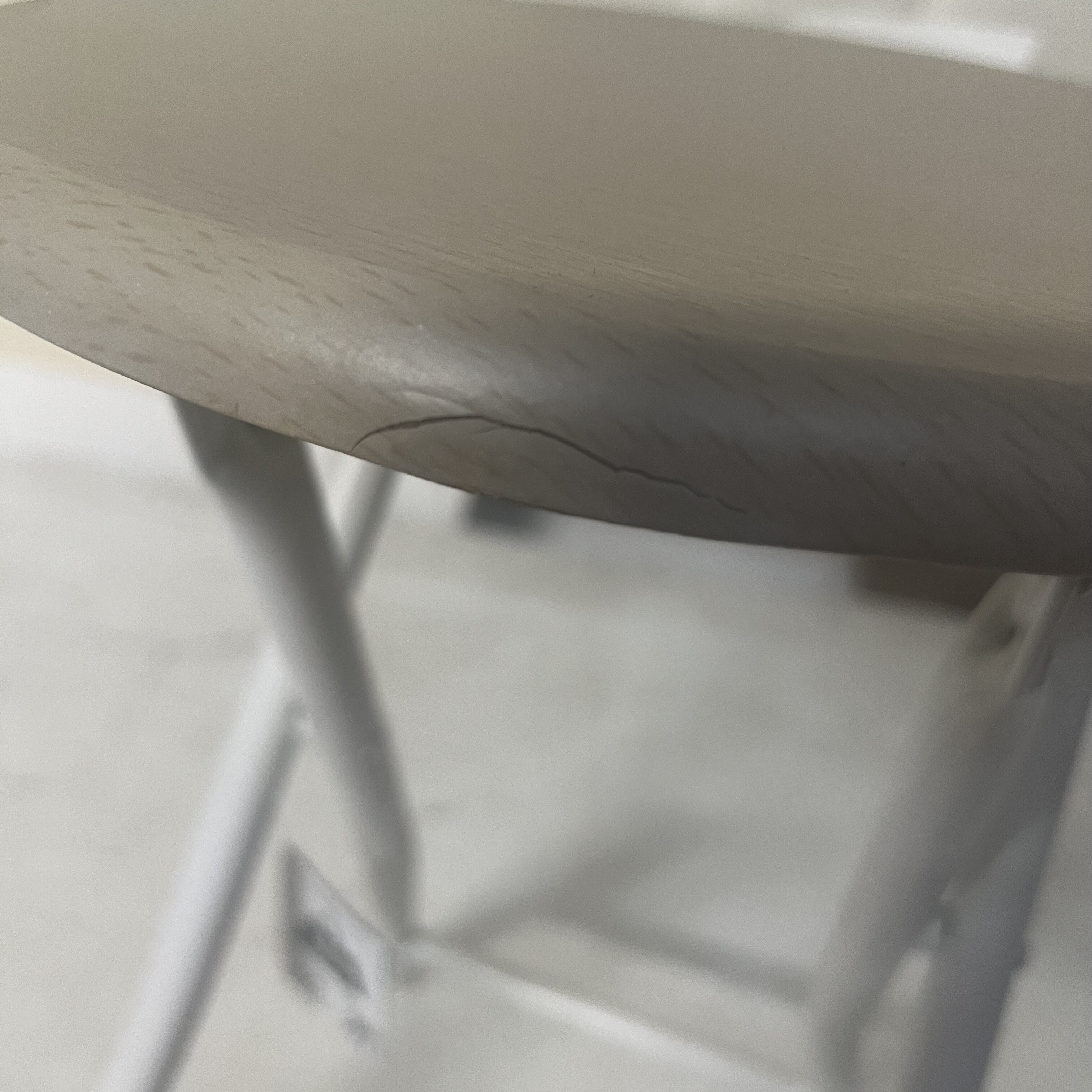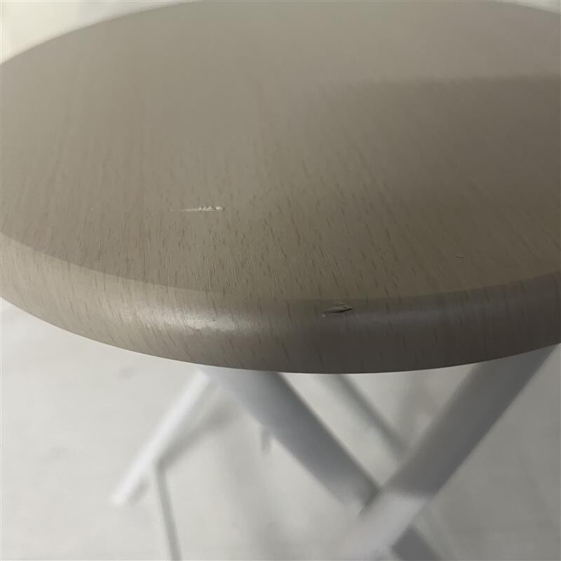 Židle má poškozený sedák s viditelnou rýhou a poškrábanou konstrukci. Poškození je převážně estetického charakteru.