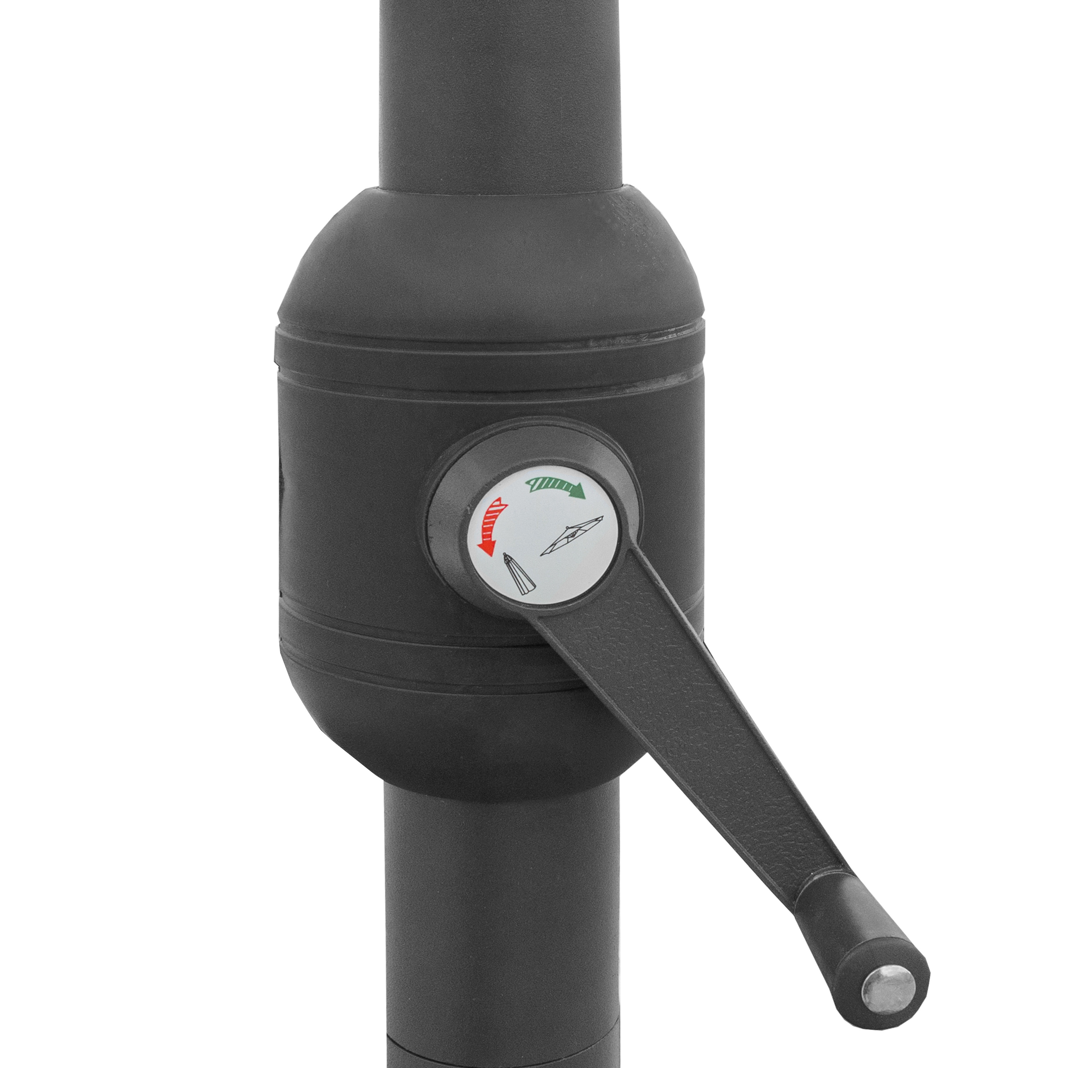 Snadnou manipulaci při rozkládání a skládání slunečníku zajišťuje jednoduchý klikový mechanismus.