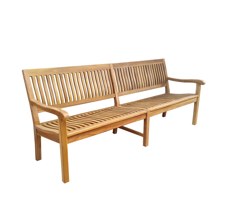 Zahradní lavička z teakového dřeva Kingsbury, nabízí optimální komfort sezení díky ergonomickému tvarování posezu i opěradla.