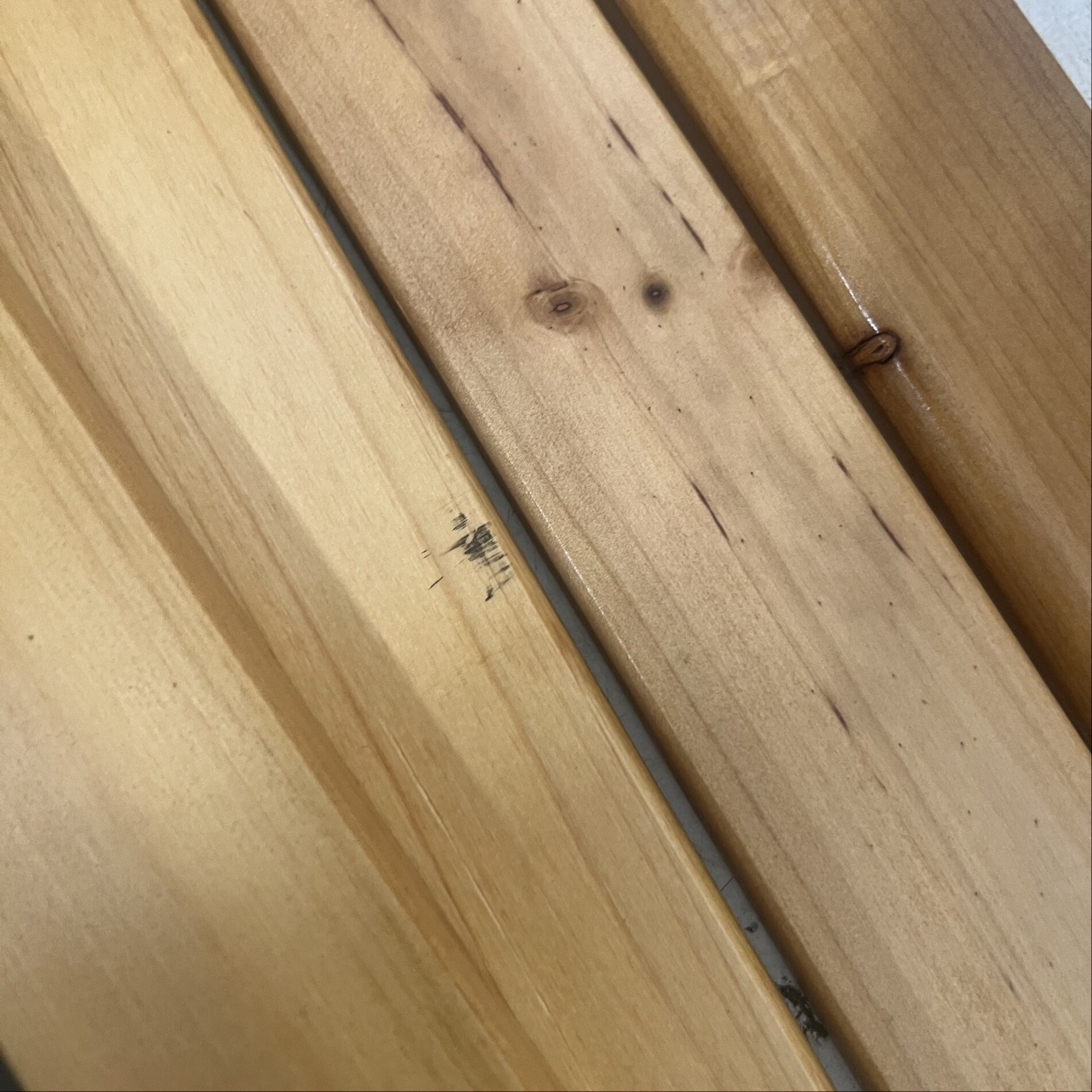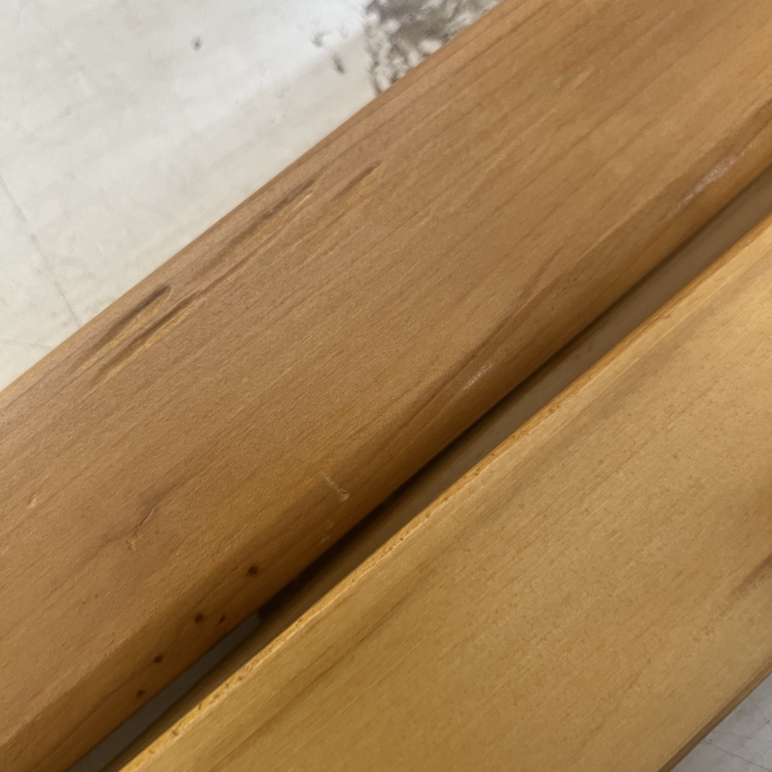 Dřevěné desky jsou poškrábané a mají drobné povrchové poškození