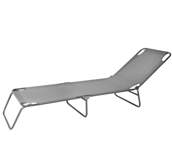 Lehátko má komfortní potah, polohovací čelo a tři stabilní kovové nohy.