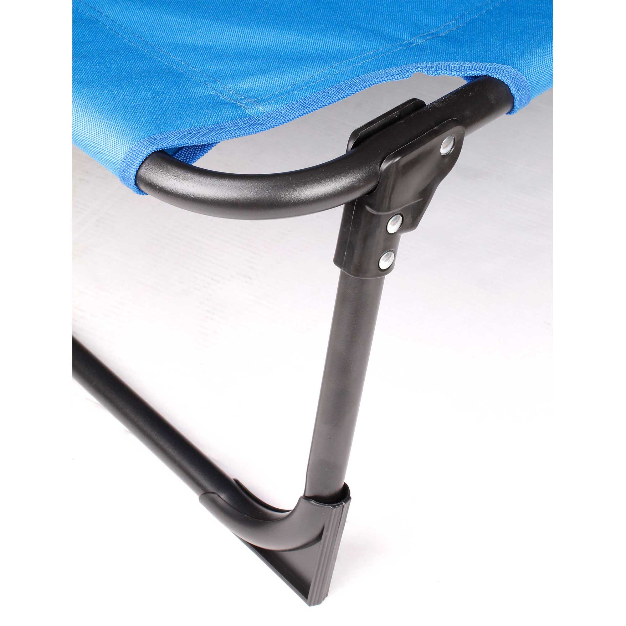 Skládací zahradní lehátko se zpevněnou ocelovou konstrukcí, v moderním designu, vhodné pro zahrady, na kempování či pláže.