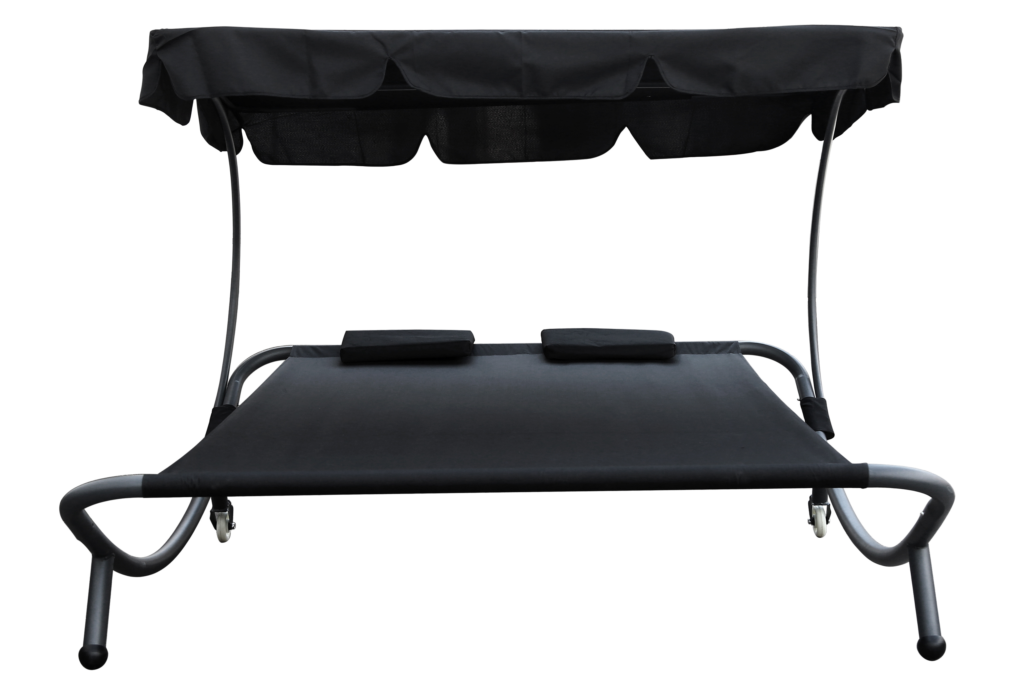 Dvojité lehátko je vyrobené z kvalitní oxfordské látky, která skvěle odolává vlivům počasí. Naklápěcí stínící stříška Vás ochrání před sluncem.