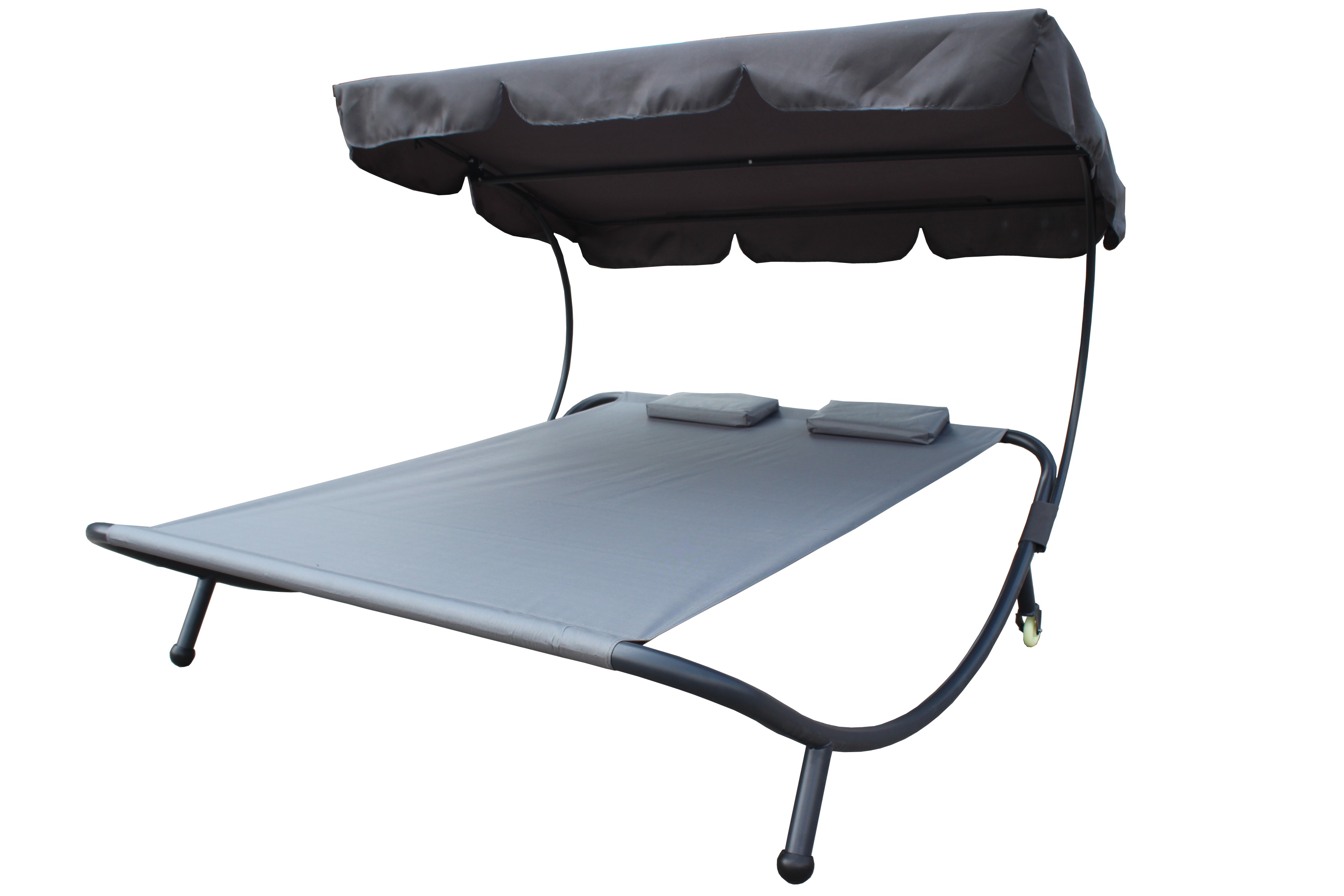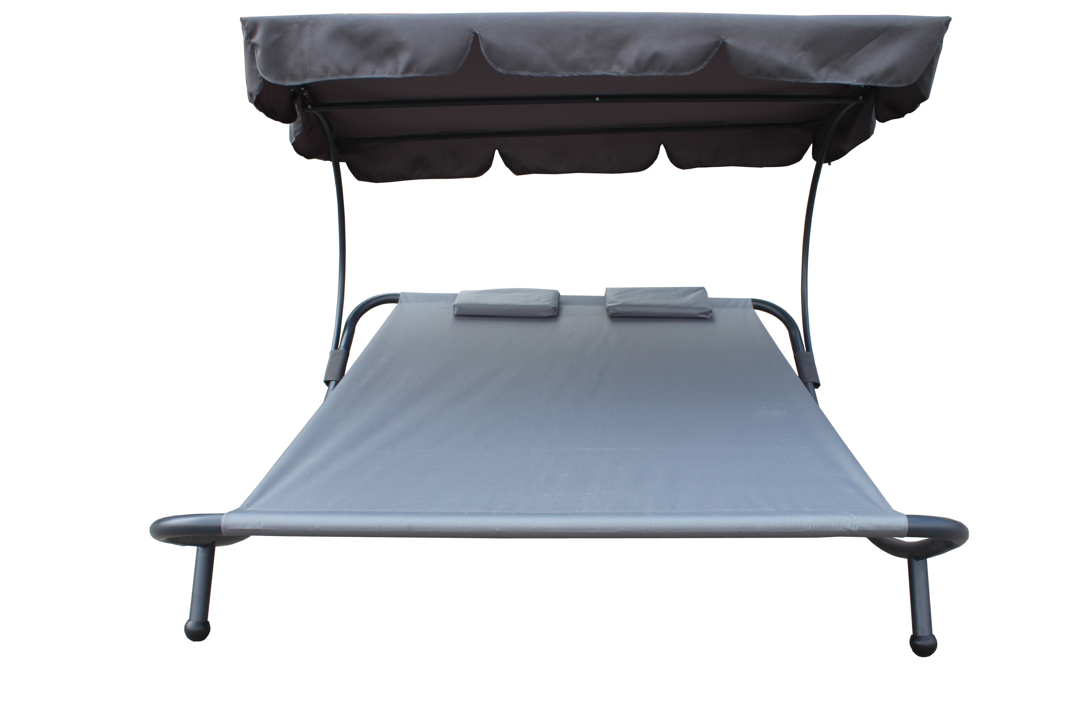 Dvojité lehátko je vyrobené z kvalitní oxfordské látky, která skvěle odolává vlivům počasí. Naklápěcí stínící stříška Vás ochrání před sluncem.