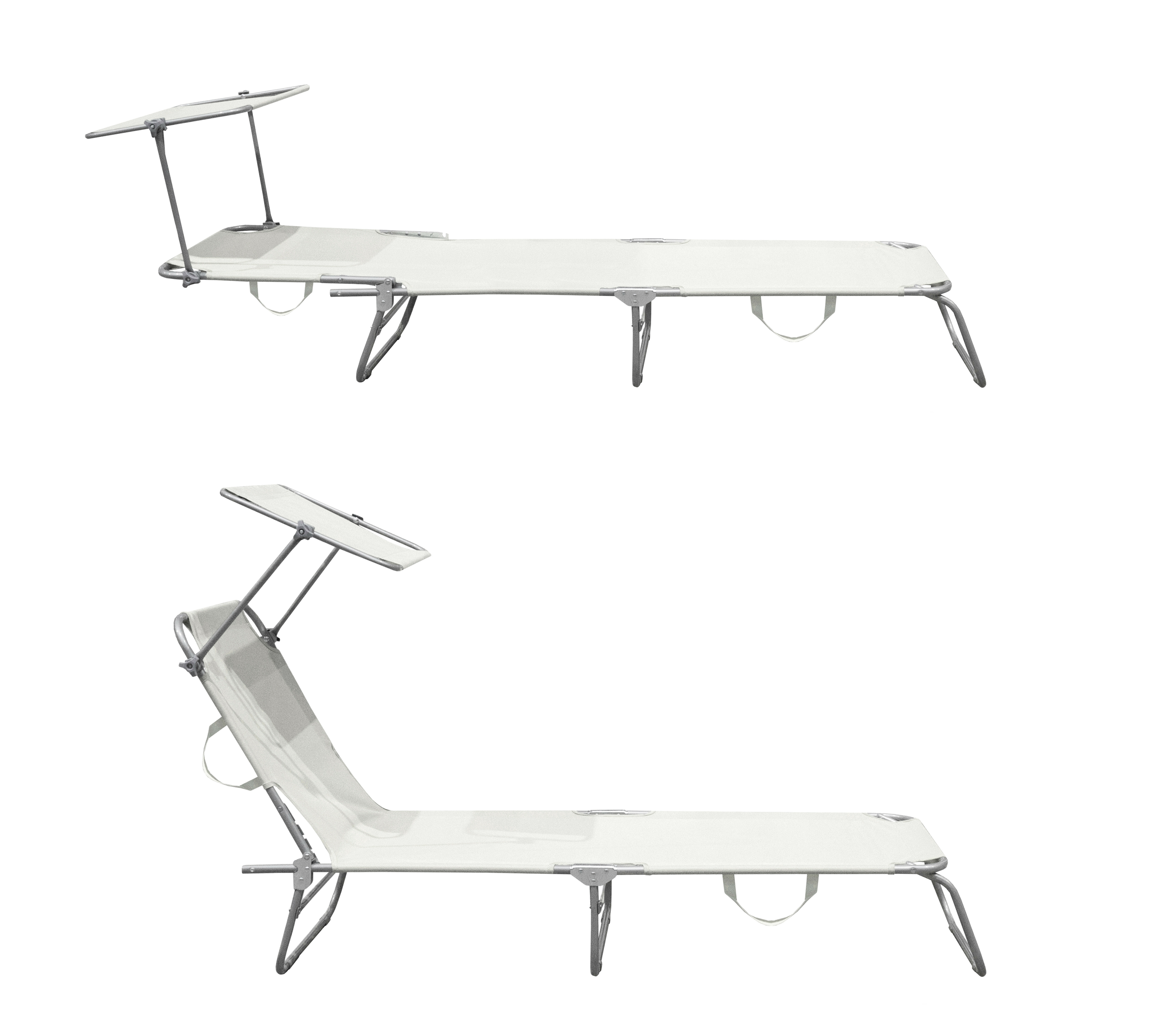 Skládací zahradní lehátko se zpevněnou ocelovou konstrukcí, v moderním designu, vhodné pro zahrady, na kempování či pláže.