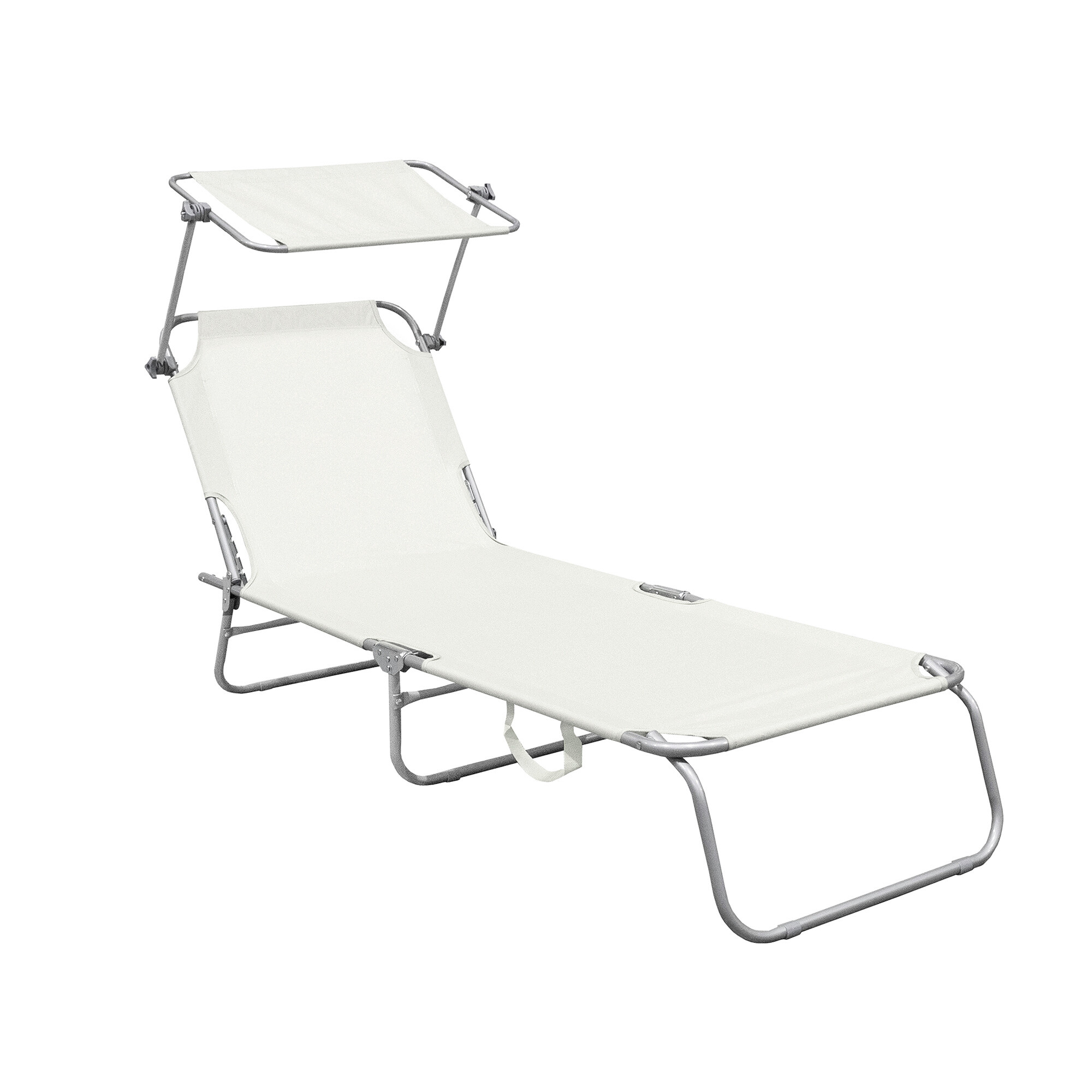 Na lehátku lze odpočívat i při ostrém sluníčku, neboť zabudovaná stříška Váš obličej dokonale ochrání před prudkým sluncem.