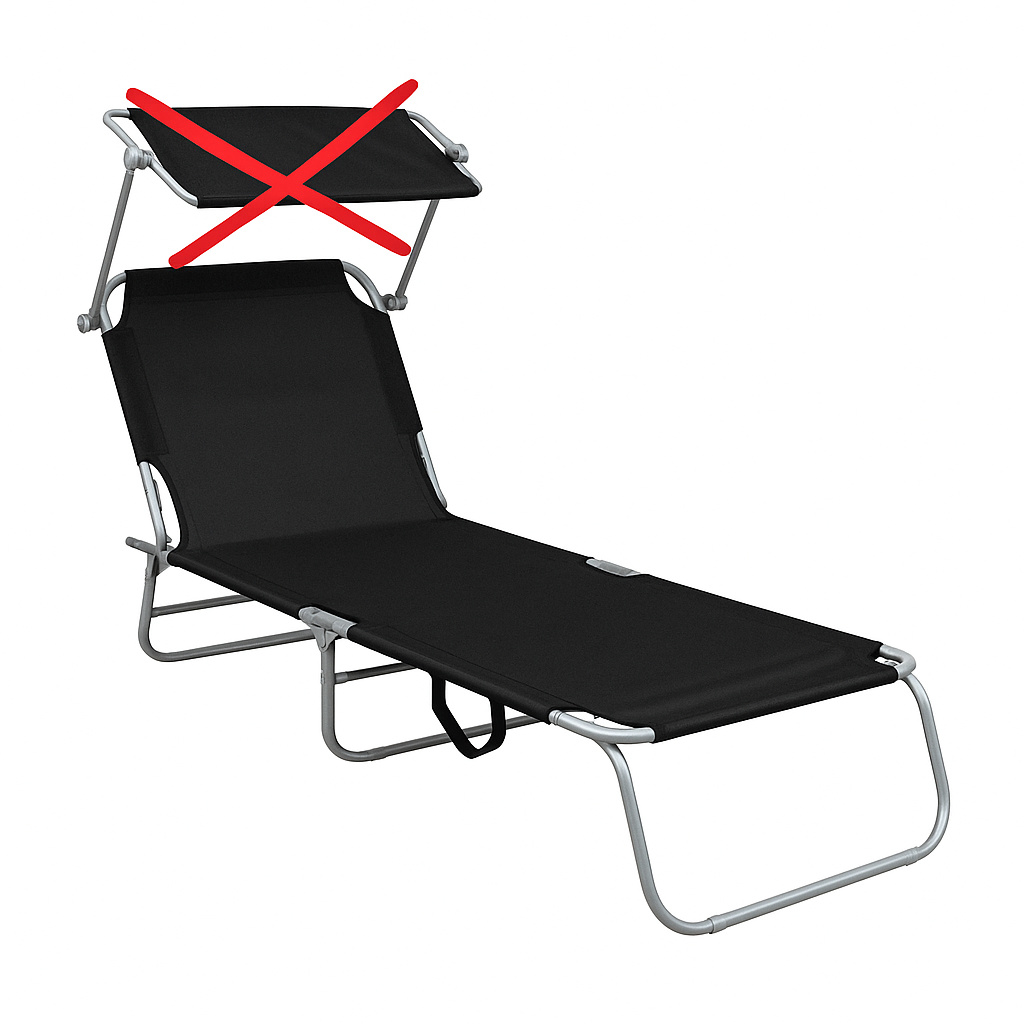 Tento kus je dodáván bez stříšky. Samotné lehátko je však zcela plně funkční a pohodlné k používání.