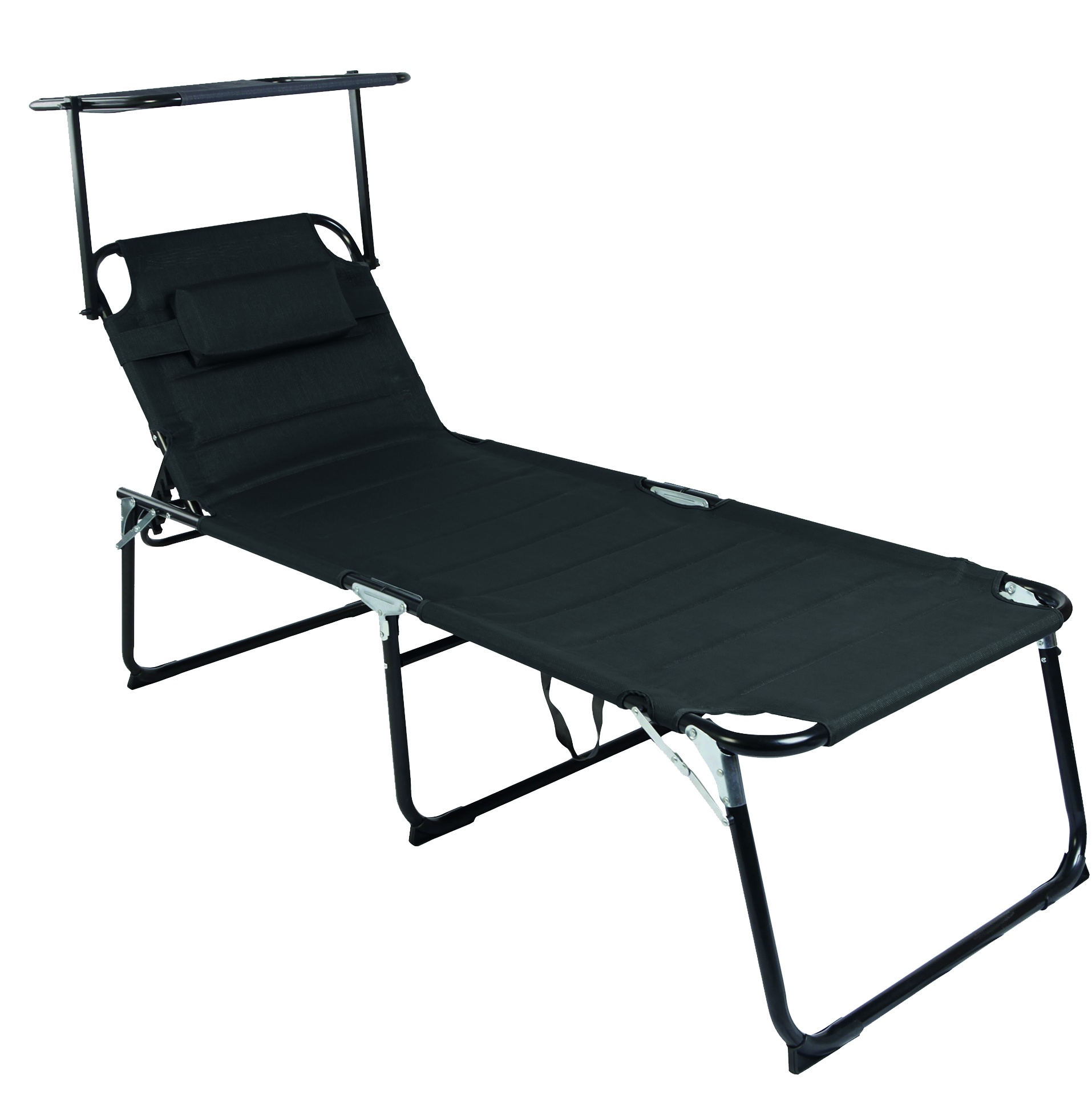 Skládací zahradní lehátko se stříškou a s polstrováním a zpevněnou hliníkovou konstrukcí, v moderním designu, vhodné pro zahrady, na kempování či pláže.