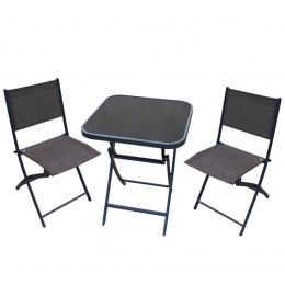 Sestava zahrnuje 2 křesla a stůl v barvě antracit se speciálním temperovaným tvrzeným sklem.