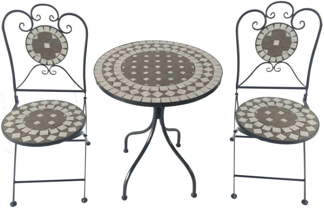 Skládací zahradní sestava bistro v mozaikovém designu. Vzorek mozaiky vytváří velmi zvláštní vzhled.