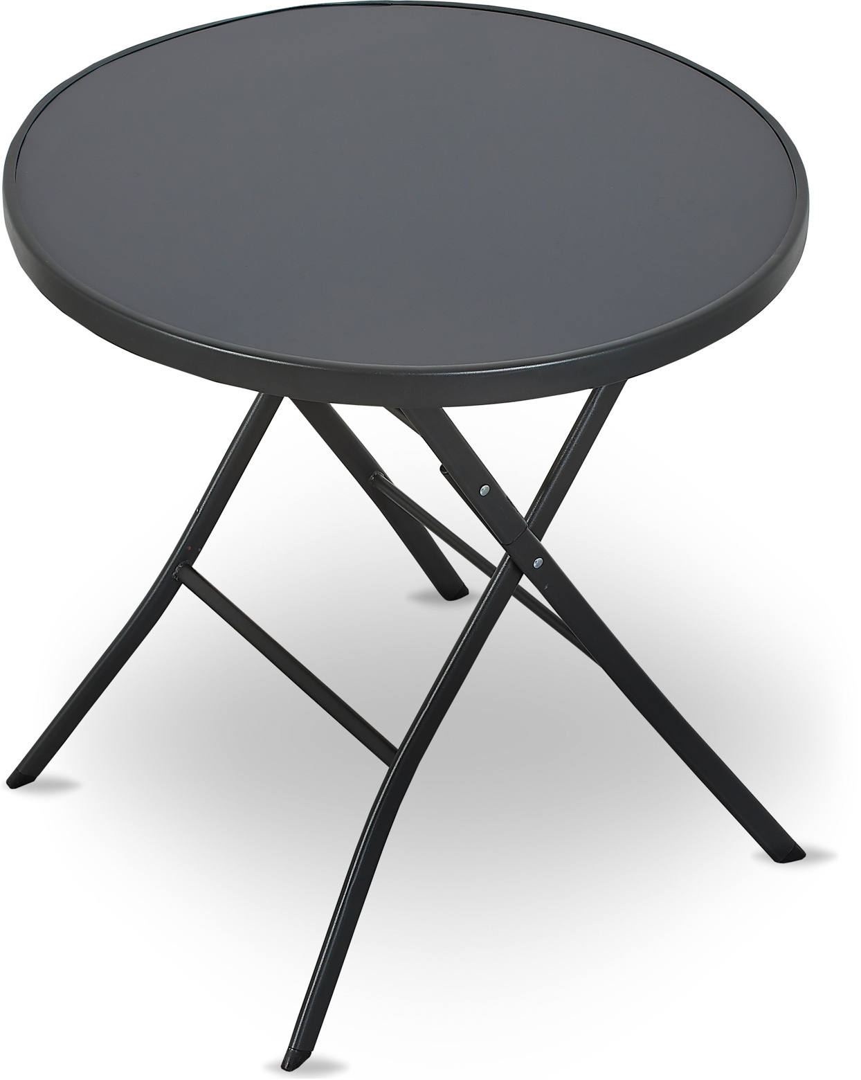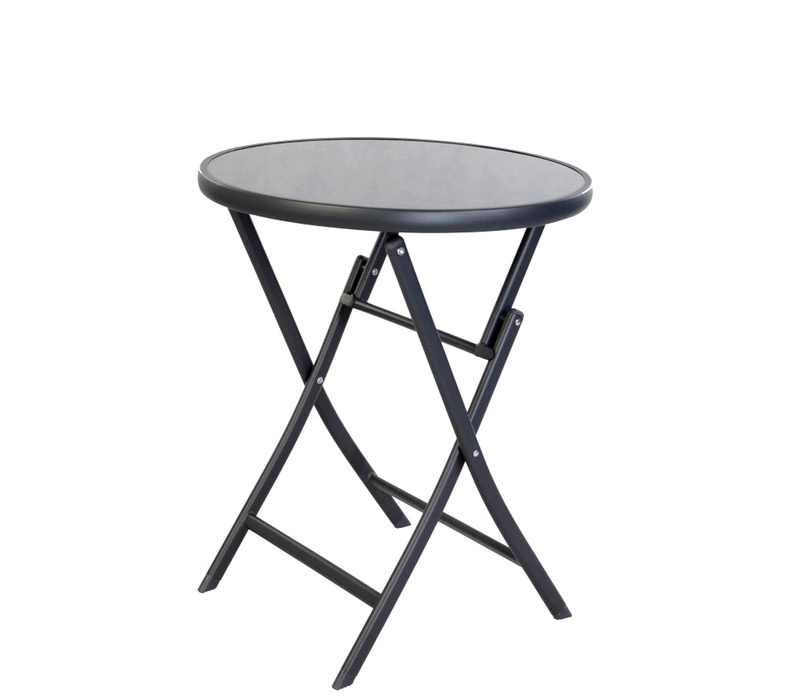 Skládací zahradní stolek s pevným kovovým rámem a skleněnou deskou, ideální pro zahrady, terasy, altány, balkóny, ale také do interiéru restaurací a kaváren.