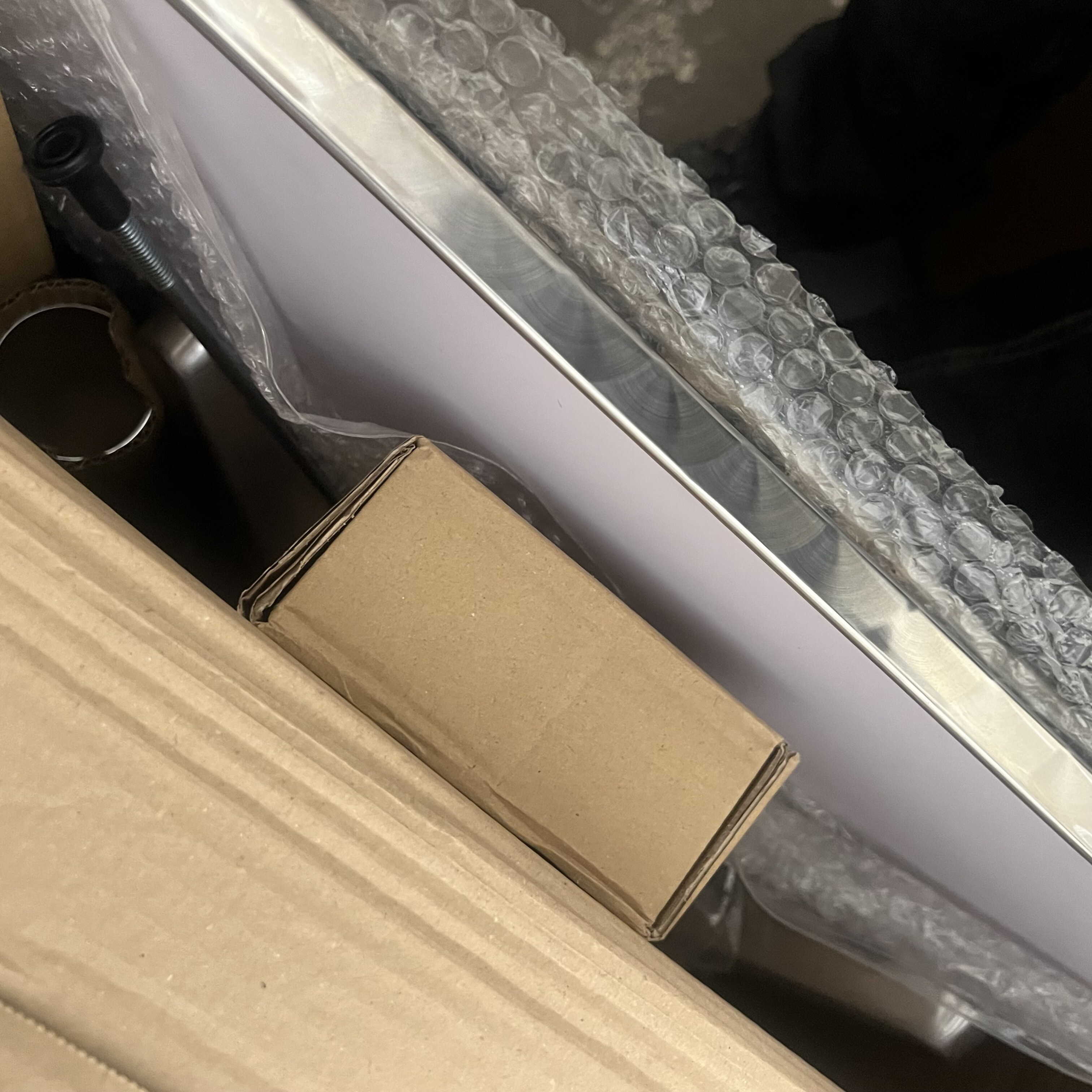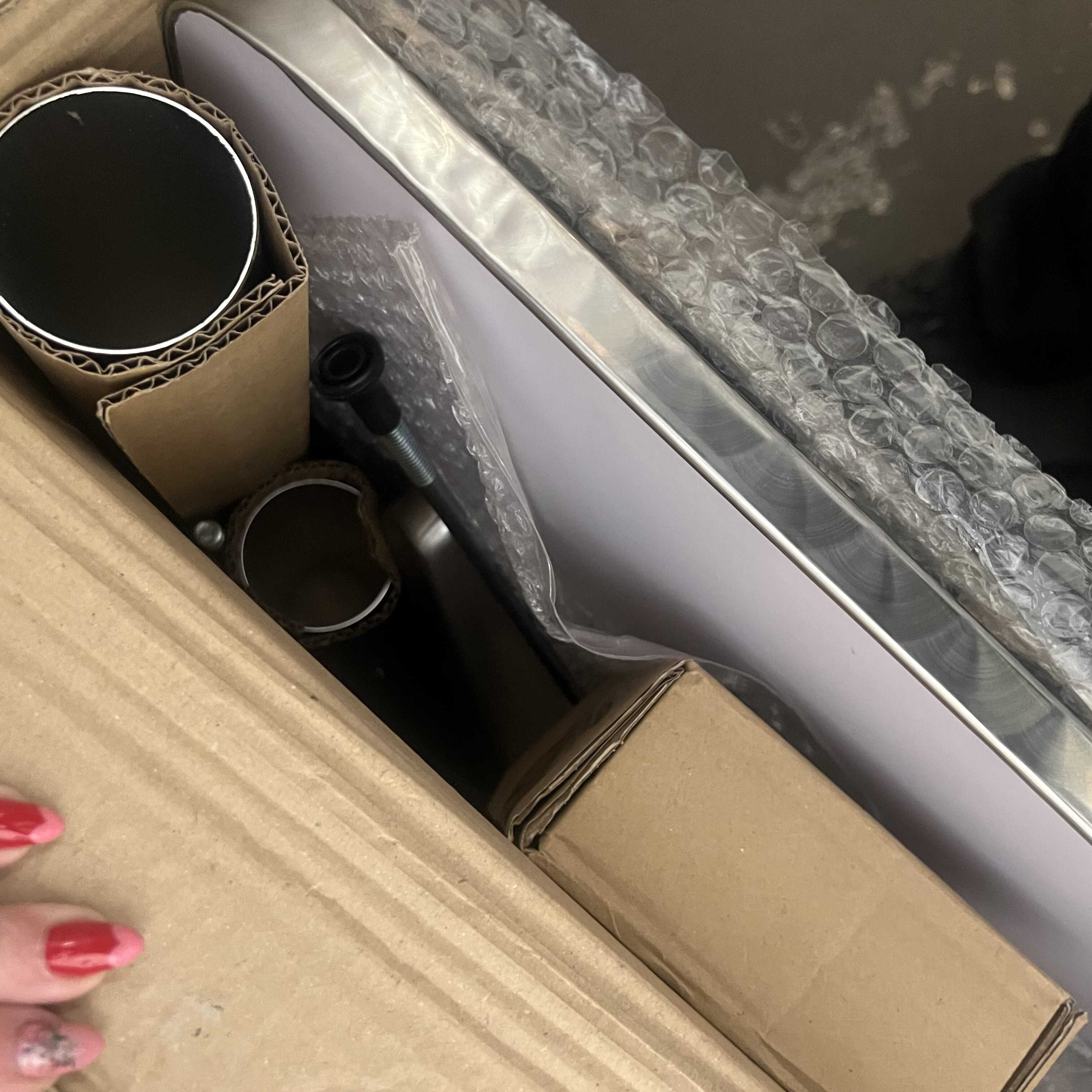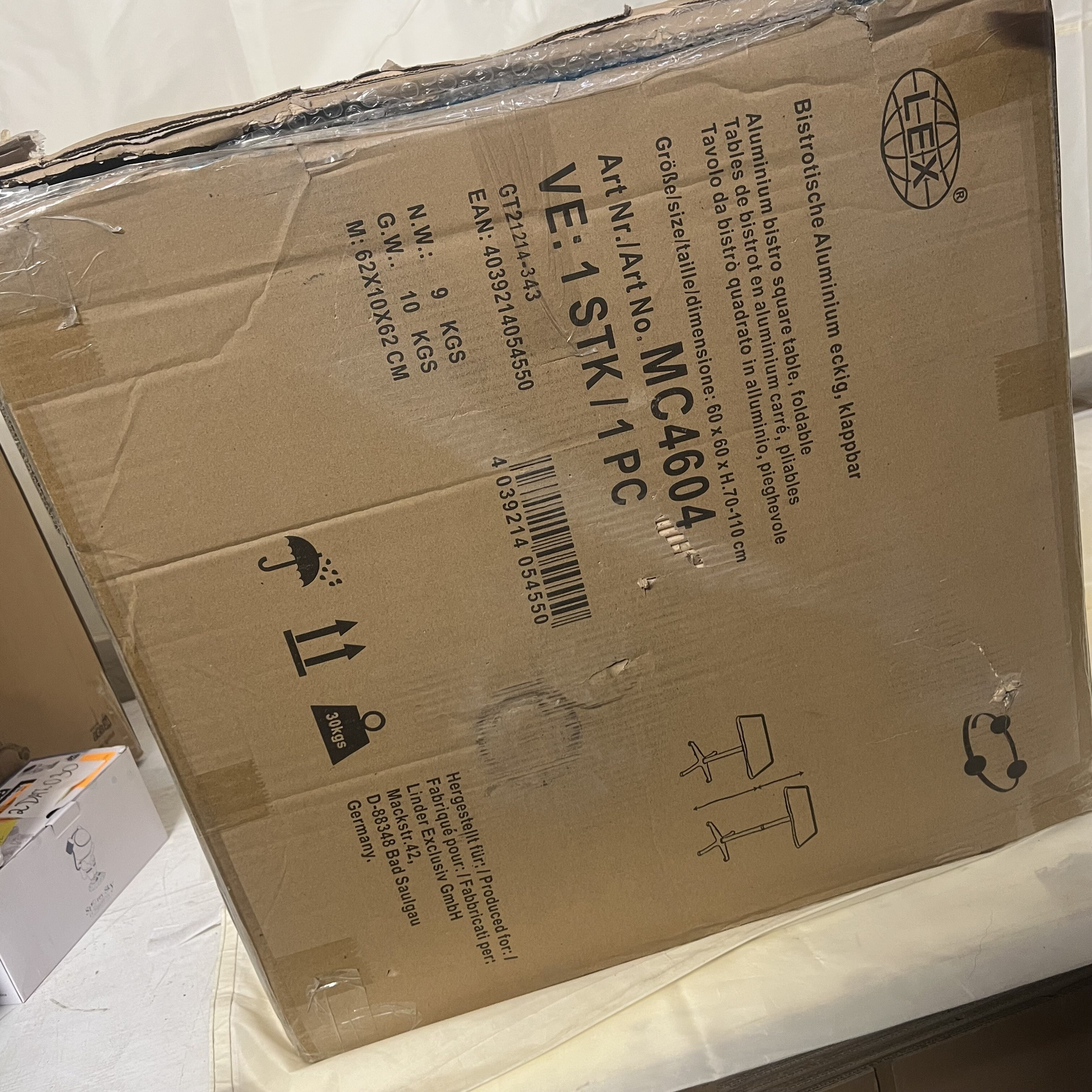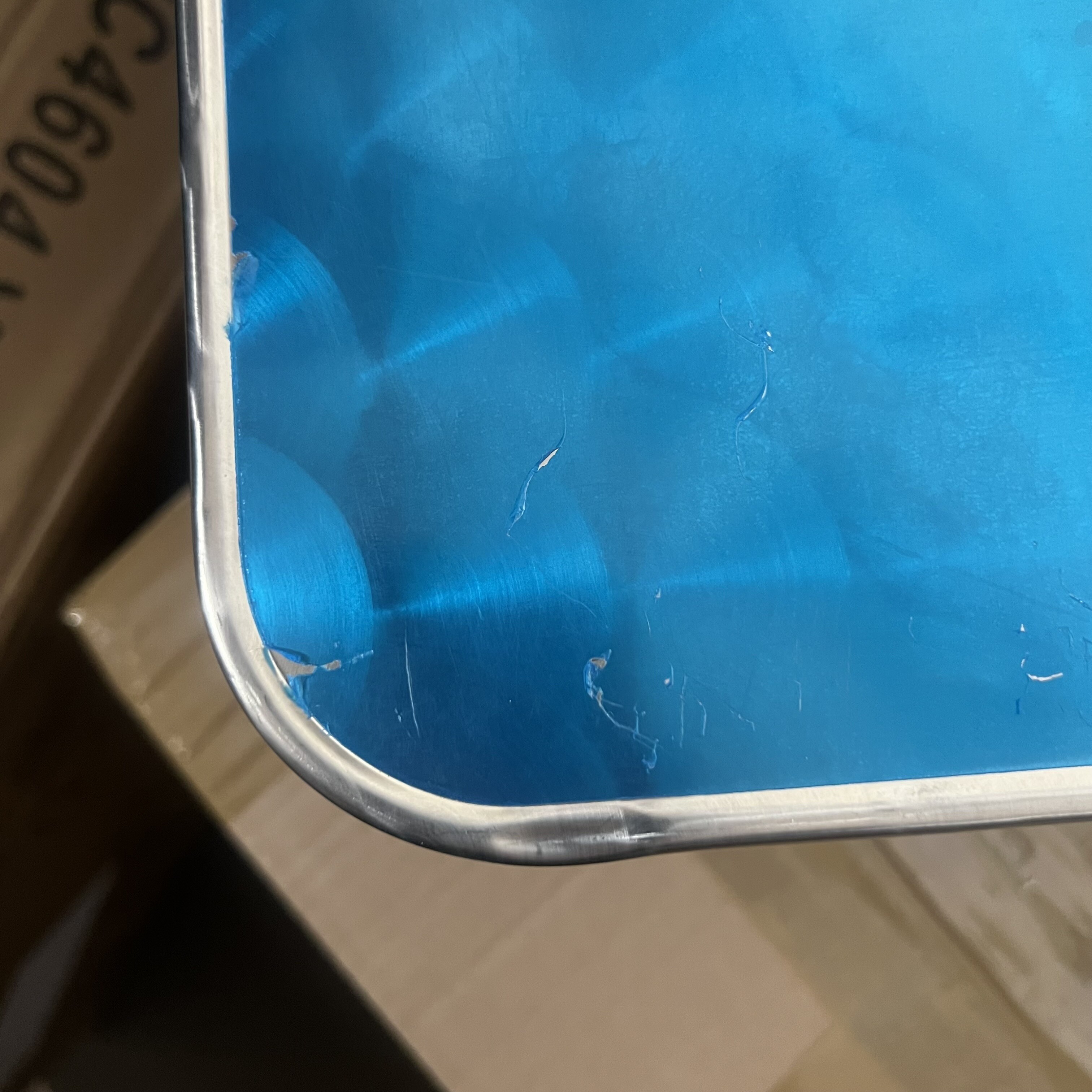 Stůl má na rámu drobnou promáčklinu, potrhaná ochranná fólie a drobné vady v rozích stolu.