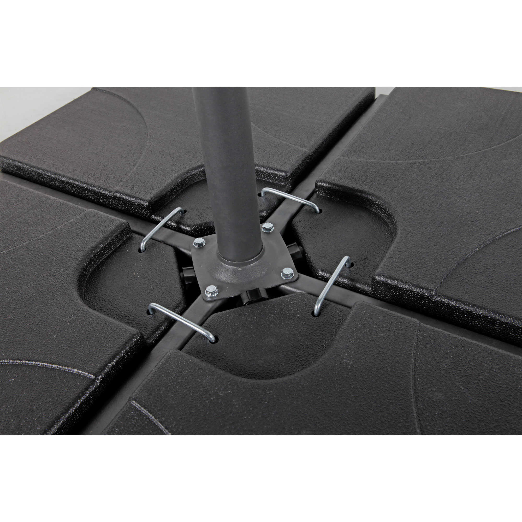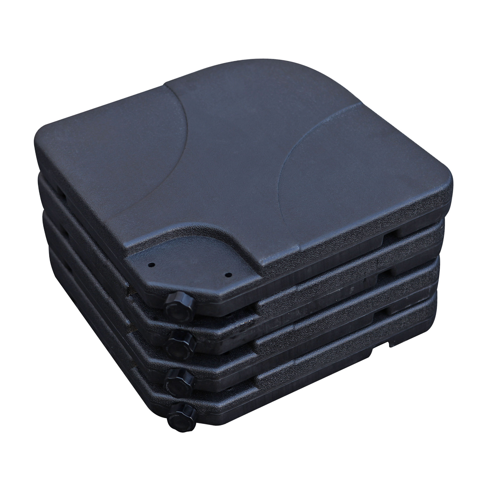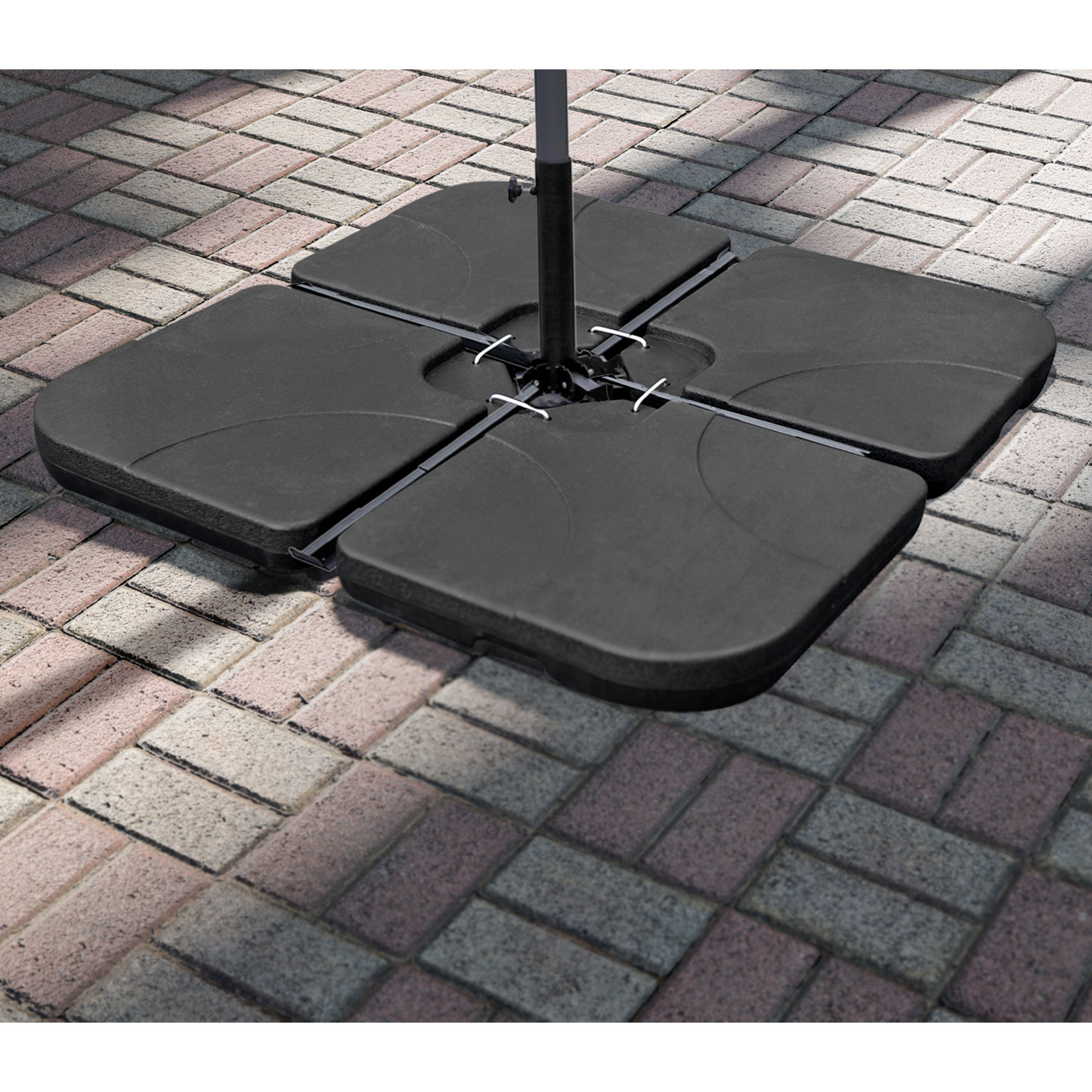 Sada se skládá ze 4 zátěžových desek o rozměrech 50x50x6 cm. Desky lze snadno naplnit pískem nebo vodou a zatížit tak stojan vašeho slunečníku.