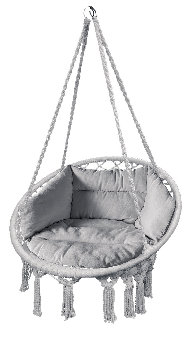 Závěsný koš v sobě spojuje komfort a nejnovějšími designovými trendy. Zajímavá konstrukce v kombinaci s uzlovými dekoracemi bez pochyby podtrhne design každého interiéru či exteriéru.