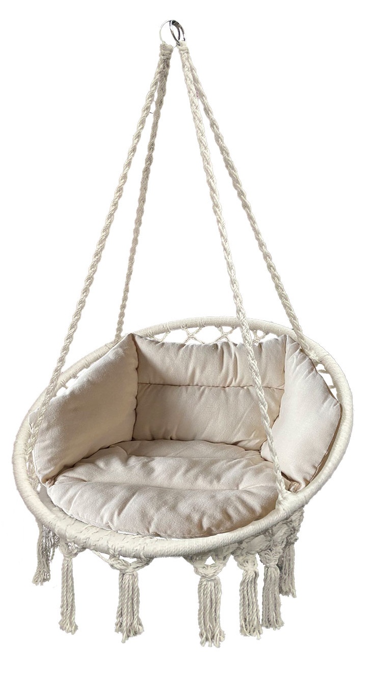 Závěsný koš v sobě spojuje komfort a nejnovějšími designovými trendy. Zajímavá konstrukce v kombinaci s uzlovými dekoracemi bez pochyby podtrhne design každého interiéru či exteriéru.
