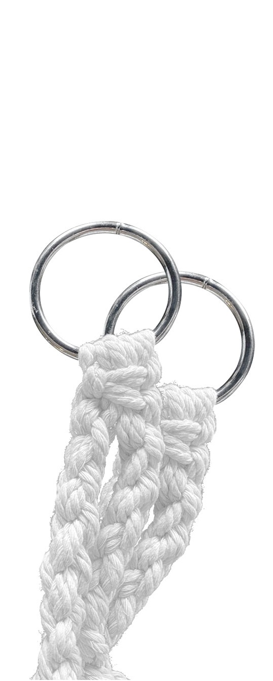 Sedací část je připevněna stabilními kovovými kroužky, díky čemu lze křeslo zavěsit téměř kdekoliv. Sedací díl je vyroben z pevného pleteného lana.