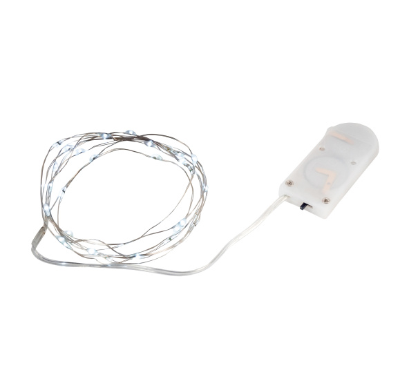 Použití řetězu i ve vlhku (box s bateriií musí být v suchu, měděný drátek s led diodami může být i ve vodě!). Má stále svítící režim (nebliká).