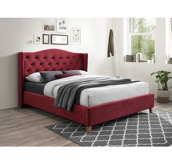 Popis produktu Postel Aspen Velvet 160x200 cm Bordó 59/Dub