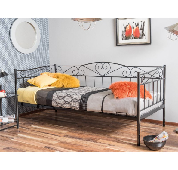 Jednolůžková postel zajistí pohodlný spánek, konstrukce je vyrobena z kovu a má vyvýšené čelo