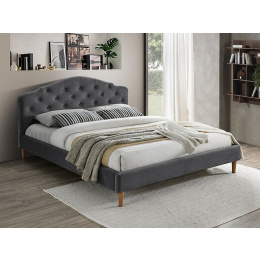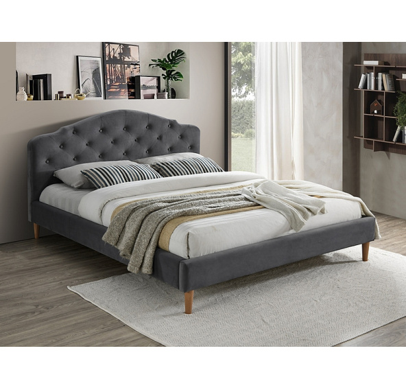 Jednou z největších předností postele je její vyvýšené čelo. To je elegantně vytvarované a vytvoří vám spolehlivou podporu také při sezení, a navíc ochrání zeď před poškozením a ušpiněním. Konstrukce postele je vyrobená z pevného dřeva, které je potažené příjemnou sametovou látkou. Rám postele je přizpůsobený pro matraci s rozměry 160 x 200 cm.