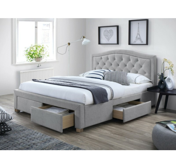 Postel, látka, barva: šedá, tap. 76, V kompletu je rám s pružinovými lamelami zasazenými v pružných úchytech a 4 zásuvky. Rozměr matrace 180x200 cm (cena bez matrace).