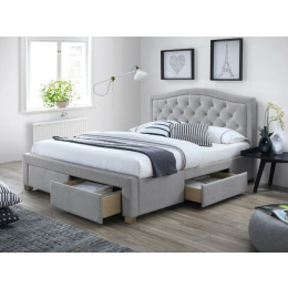 Postel, látka, barva: šedá, tap. 76, V kompletu je rám s pružinovými lamelami zasazenými v pružných úchytech a 4 zásuvky. Rozměr matrace 180x200 cm (cena bez matrace).