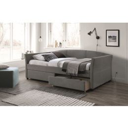 Jednolůžková postel zajistí pohodlný spánek, čalounění příjemnou látkou, konstrukce je vyrobena ze dřeva, 2 úložné prostory, vyvýšené čelo a opěrky.