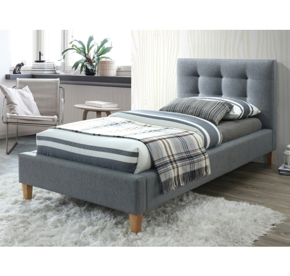 Konstrukce postele je vyrobena z pevného dubového dřeva, které je potaženo příjemnou látkou. Rám postele je přizpůsoben pro matraci s rozměry 90 x 200 cm.
