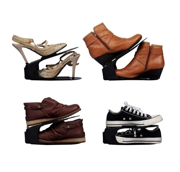 Snižte množství místa potřebného pro vaši obuv na polovinu díky tomuto chytrému triku! Organizér na boty umožňuje umístit dva páry bot do stejného prostoru, kde byste normálně umístili pouze jeden pár. Zároveň jsou boty bezpečné a nešpiní ostatní boty.