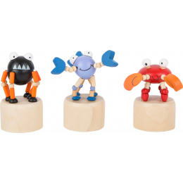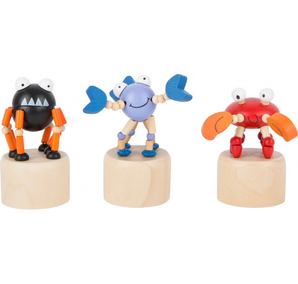 Mačkací figurka Critters 1 ks Tato veselá zvířátka jsou vyrobena z malovaného dřeva. Když zmáčknete tlačítko vespod podstavce, zvířata začnou tančit. Jsou tak veselá, že zlepší den každému, kdo je spatří. Pavouk, humr a krab. Německá firma Legler zaměřená na výrobu kvalitních dřevěných hraček od roku 1996. Všechny dřevěné hračky značky small foot mají označení CE a jsou vyráběny dle evropské normy pro bezpečnost hraček EN 71. Použité barvy jsou speciálně vyvinuty pro dřevěné hračky a jsou odolné i proti slinám dětí. Dřevo, které se používá pro tyto hračky, většinou pochází z lesnických společností zapojených do zalesňování. To nabízí všem zákazníkům možnost přispět k zachování přirozeně rostoucích lesů. Dřevěné hračky small foot jsou zářivě barevné produkty, které jsou vyrobeny převážně z přírodních surovin - dřeva. Dětem dělají radost od útlého věku, rozvíjí jejich hmatové a smyslové dovednosti. Cílem značky small foot je podporovat duševní a fyzický vývoj dětí.