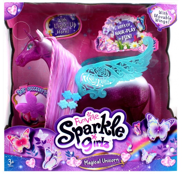 Magický svítící jednorožec Sparkle Girlz s křídly a svítícím rohem. Set obsahuje doplňky na zdobení hřívy.Krásný set pro malé holčičky.