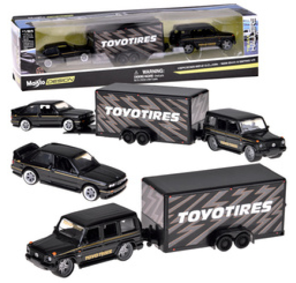 Maisto Licencovaná kovová auta 1:64 – Mercedes-Benz G 1988 a BMW M3 E30 s přívěsem