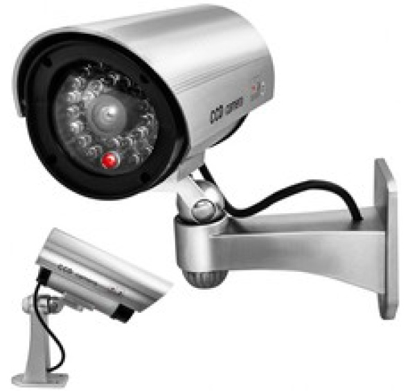 Dokonale vypadající plastová imitace bezpečnostní kamery. Zařízení je vybaveno vestavěnou červenou LED. Snadná instalace. Maketa CCTV kamery pro monitorování. Díky použití všech prvků, které má běžná kamera, tedy objektivu, kabelu a držáku, že figurína je přesnou kopií průmyslové kamery. Ke sledování lidí není potřeba drahá povolení. Zařízení je vybaveno vestav blikající červená LED. Kamera je prakticky bezúdržbová. Schopnost otáčet a naklánět fotoaparát. Kamera vytváří dojem, že se na místě nachází monitorovací systém a odrazuje případné narušitele.