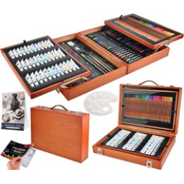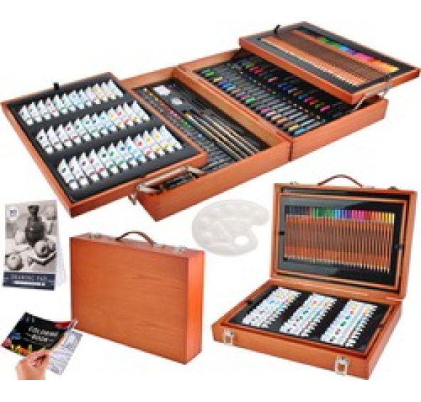 - 174 POLOŽEK - s pomocí obrovského výběru 54 olejových pastelů, 34 tužek, 36 různých druhů barev (po 12 kusech olejových, akrylových a akvarelových barev), 42 fixů, 2 tužky, 4 štětce, ořezávátka, gumy můžete snadno vytvořit nejnáročnější, nejkreativnější a originální díla. Součástí jsou produkty jako omalovánka, podložka na kreslení a paleta na míchání barev.