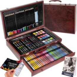 - PRAKTICKÝ KUFŘ SE ZÁSUVKOU - výtvarná sada pro děti má praktické dřevěné pouzdro, které je opatřeno zavíráním a madlem. Díky tomu je přeprava obsahu kufru pohodlná a velmi snadná.