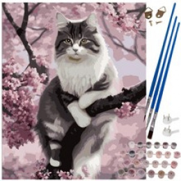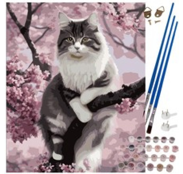 MALOVÁNÍ PODLE ČÍSEL KOČKA / PLÁTNO NA DŘEVĚNÝ RÁM