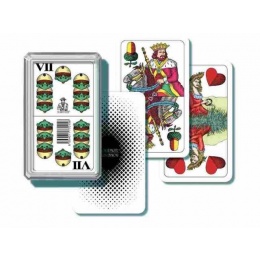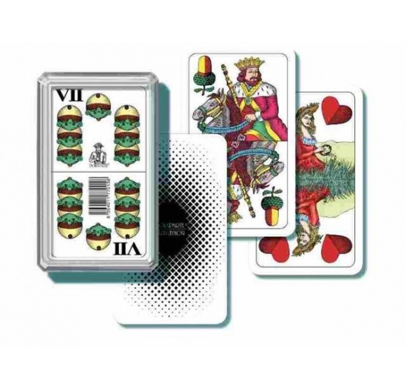 Klasické mariášové karty dvouhlavé – v plastovém pouzdře. Klasické mariášky vhodné na volený i licitovaný mariáš.