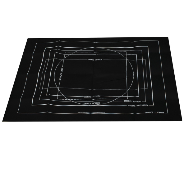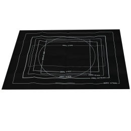 • Podložka je vyrobena výhradně z polyesteru se strukturou připomínající plsť. Má bílý rámeček, který ukazuje, jak velkou plochu bude uspořádaný vzor zabírat.