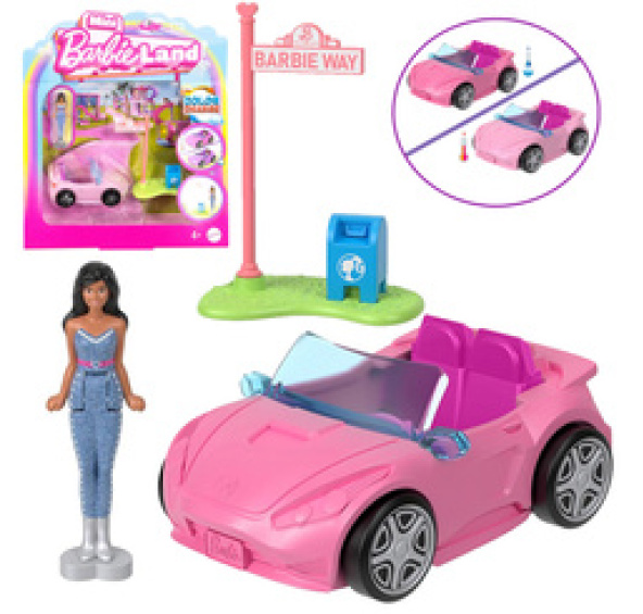Vstup do cukrového světa BarbieLand, tentokrát v mini verzi! Stylový kabriolet samozřejmě v růžové barvě bude skvělým doplňkem kolekce ze série Mini BarbieLand, ale osvědčí se také jako samostatná hračka.