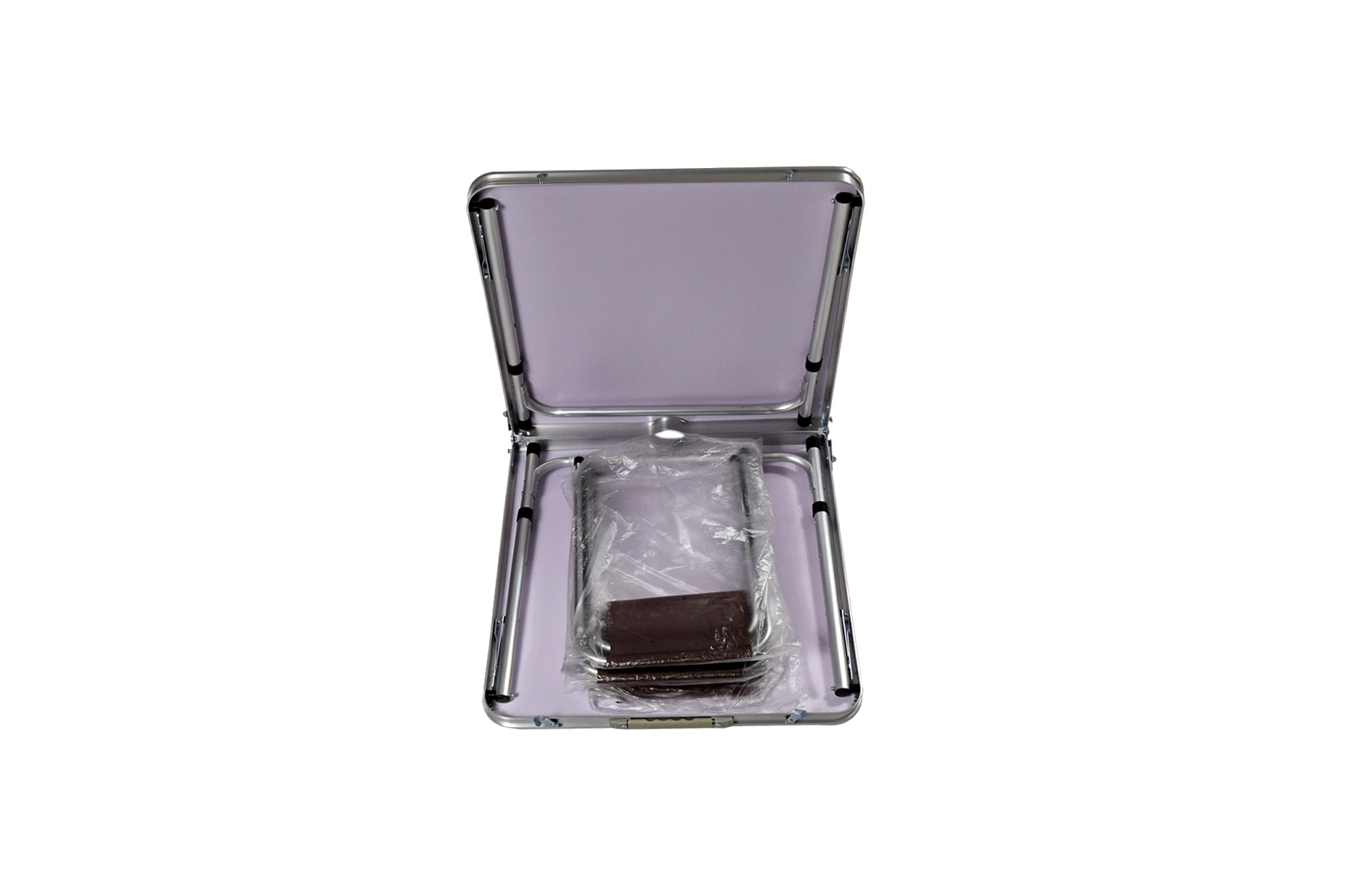 Set se dá složit do podoby malého kufříku. Součástí je i ucho, za které se dá složený stolek snadno přenášet.