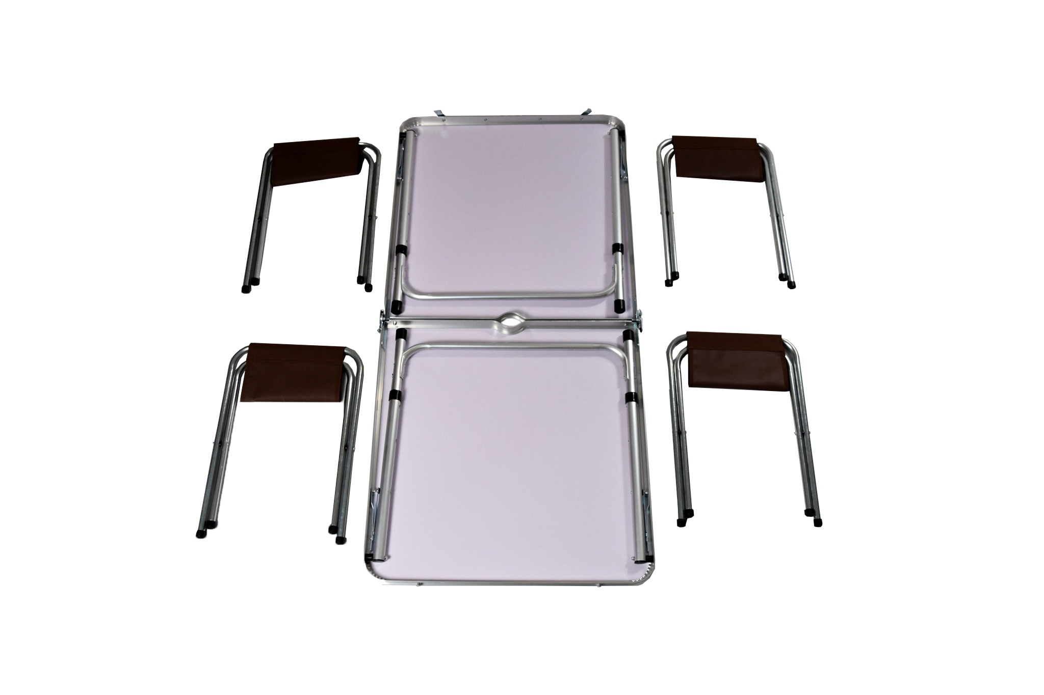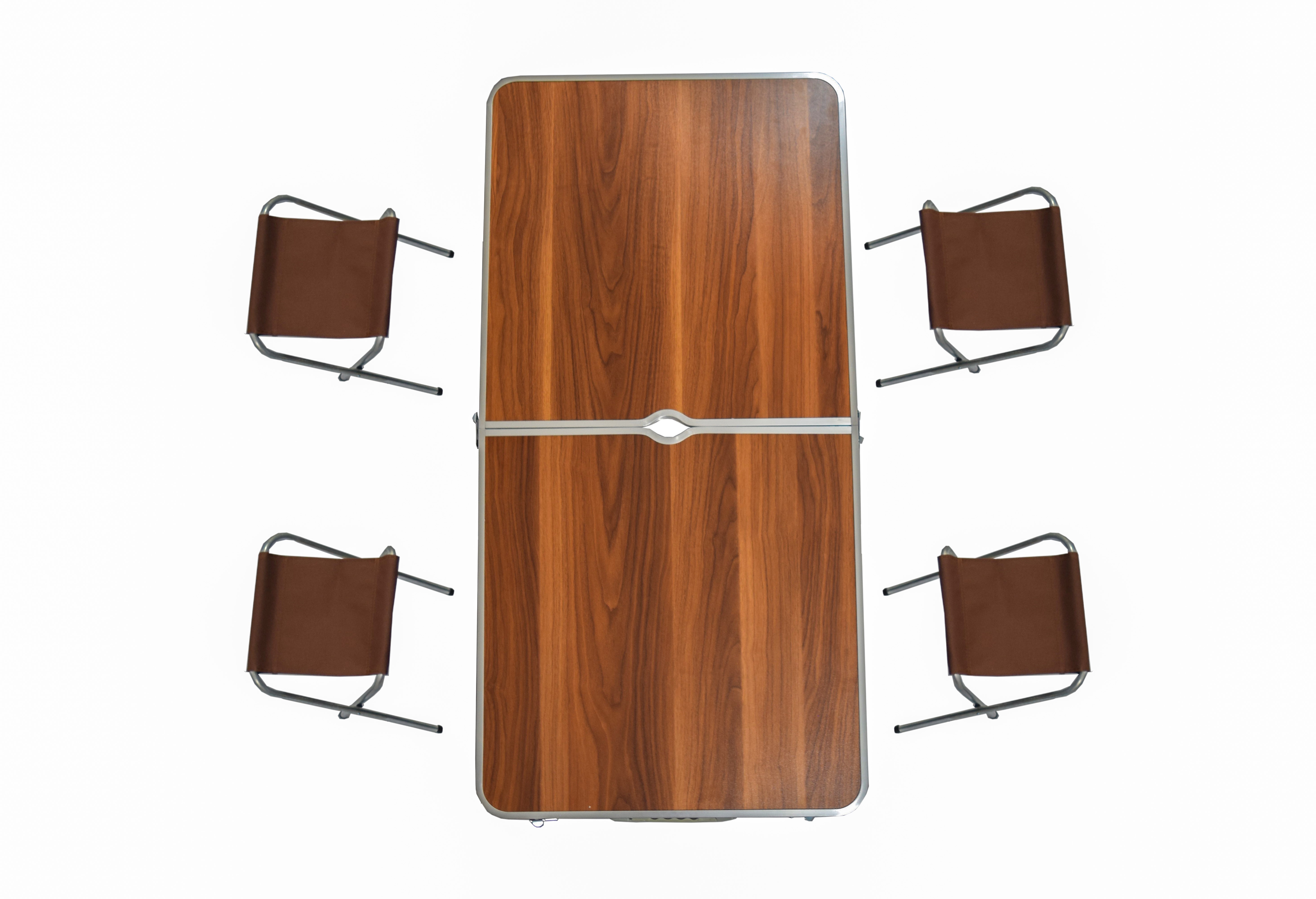 Předností tohoto stolku a židlí je jeho mimořádná skladnost a jednoduchá sestavitelnost.
