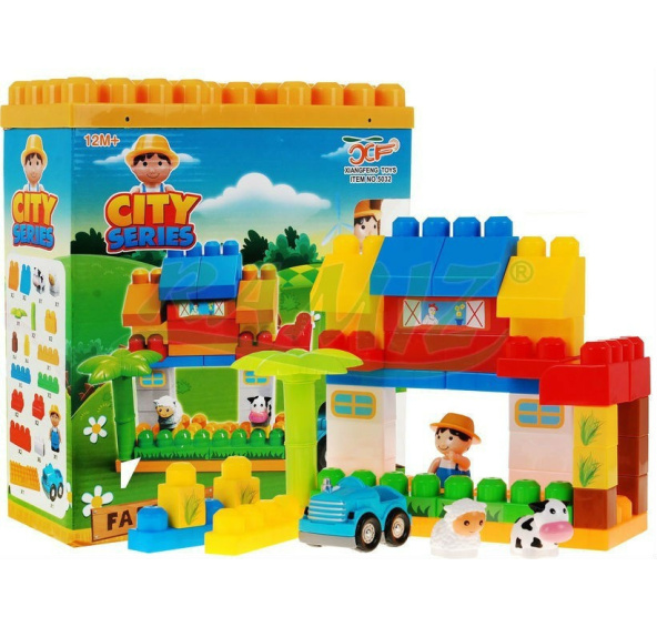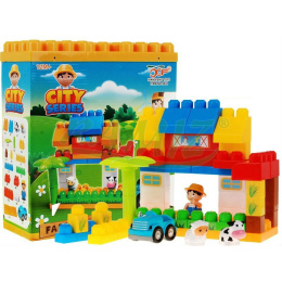 A jaká je to zábava, když jsou kostky doplněny figurkami zvířat a lidí a všemi potřebnými doplňky pro stavbu farmy nebo domu.