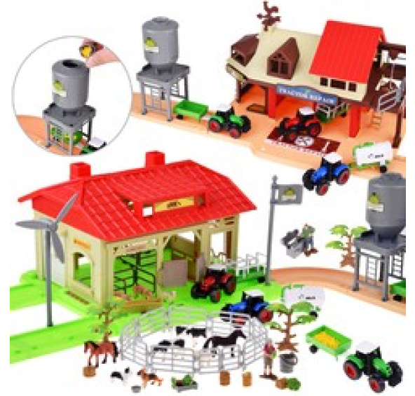 Velký, skvěle vybavenýstatek, který jistě potěší každého malého farmáře. Sada je celá vyrobena z plastu v atraktivních barvách a designu. Je vybaven veškerým potřebným příslušenstvím, které na farmě potřebujete. Práce na farmě je náročná a těžká, ale s vybavením, které tato farma obsahuje, to bude práce plná radosti. Zemědělské vybavení zahrnuje min. tři traktory ve třech barvách, každý s vlastním přívěsem. Farmář a jeho hospodyně mají plnou ohradu zvířat, o která se musí starat a ošetřovat je.
